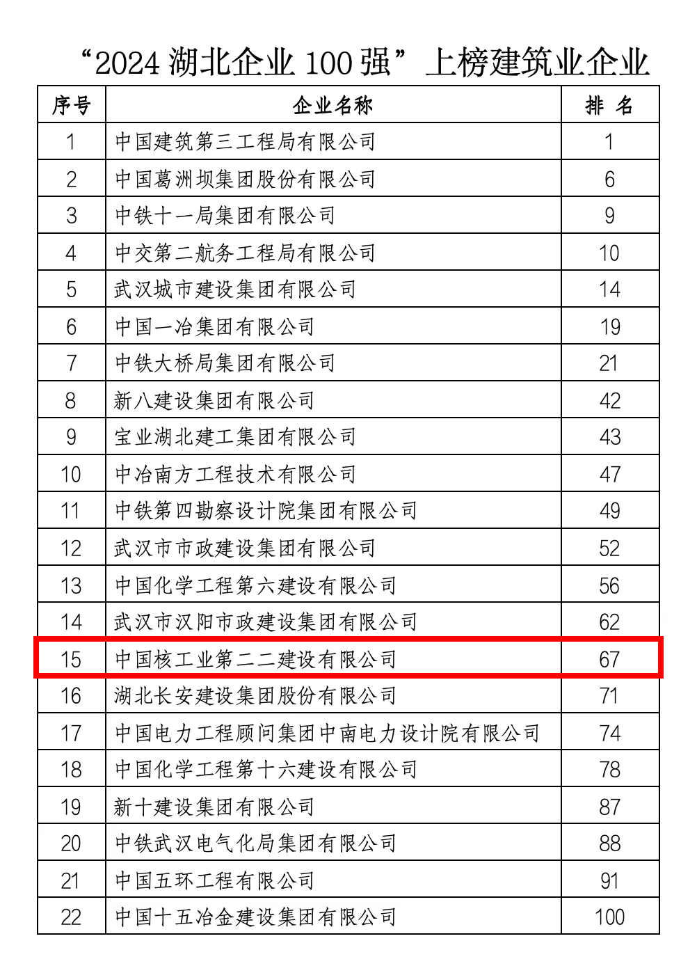 湖北日报客户端讯(通讯员向金童)近日,“2024湖北企业100强、湖北制造业企业100强、湖北服务业企业100强”三项100强名单发布,夷陵区建筑业企业中国核工业第二二建设有限公司以128.2亿元的营收荣登“2024湖北企业100强”,位列第67位。