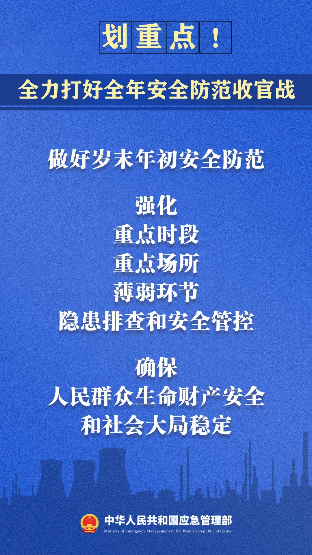 12月17日,应急管理部召开部党委会、部务会。会议认真传达贯彻国务院常务会议精神,对当前安全防范各项工作作出部署。会议强调,岁末年初各类安全风险交织叠加,要扎实推进安全生产和自然灾害风险隐患排查整治,全力打好全年安全防范工作收官战。