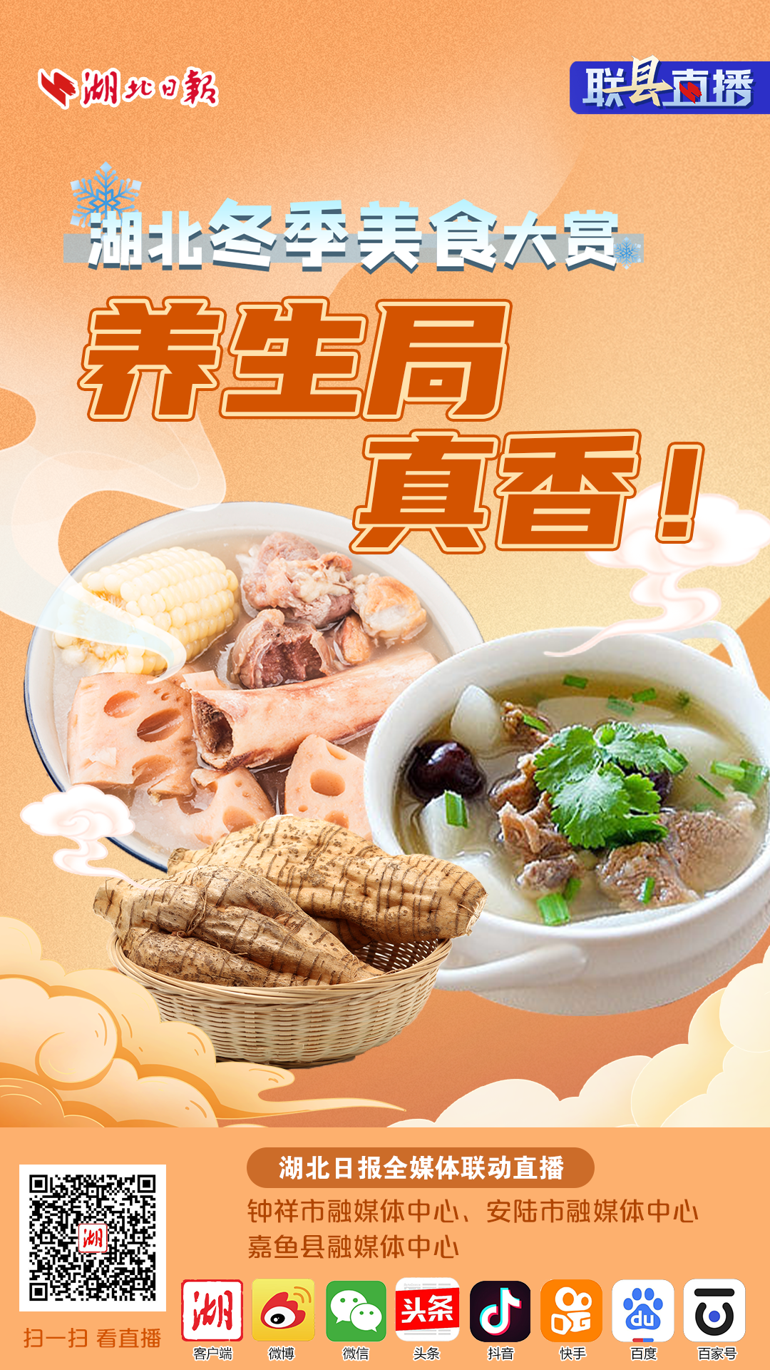 12月20日9:40,在冬至到来之前,湖北日报特联动钟祥市、安陆市和嘉鱼县融媒体中心开启湖北冬季美食大赏第二期——养生美食的寻味之旅。一碗葛根粉、一锅萝卜炖肉以及一桌全藕宴就要上菜~这场冬季养生局,约吗?