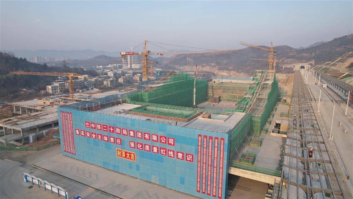 湖北日报讯(记者胡祎、通讯员杨林)从中国铁路武汉局集团有限公司获悉,12月20日,由武九客运专线湖北公司建设管理、中铁二十四局集团承建的西十高铁湖北段郧西站房顺利完成混凝土结构封顶,标志着该项目朝着竣工目标迈出关键一步。