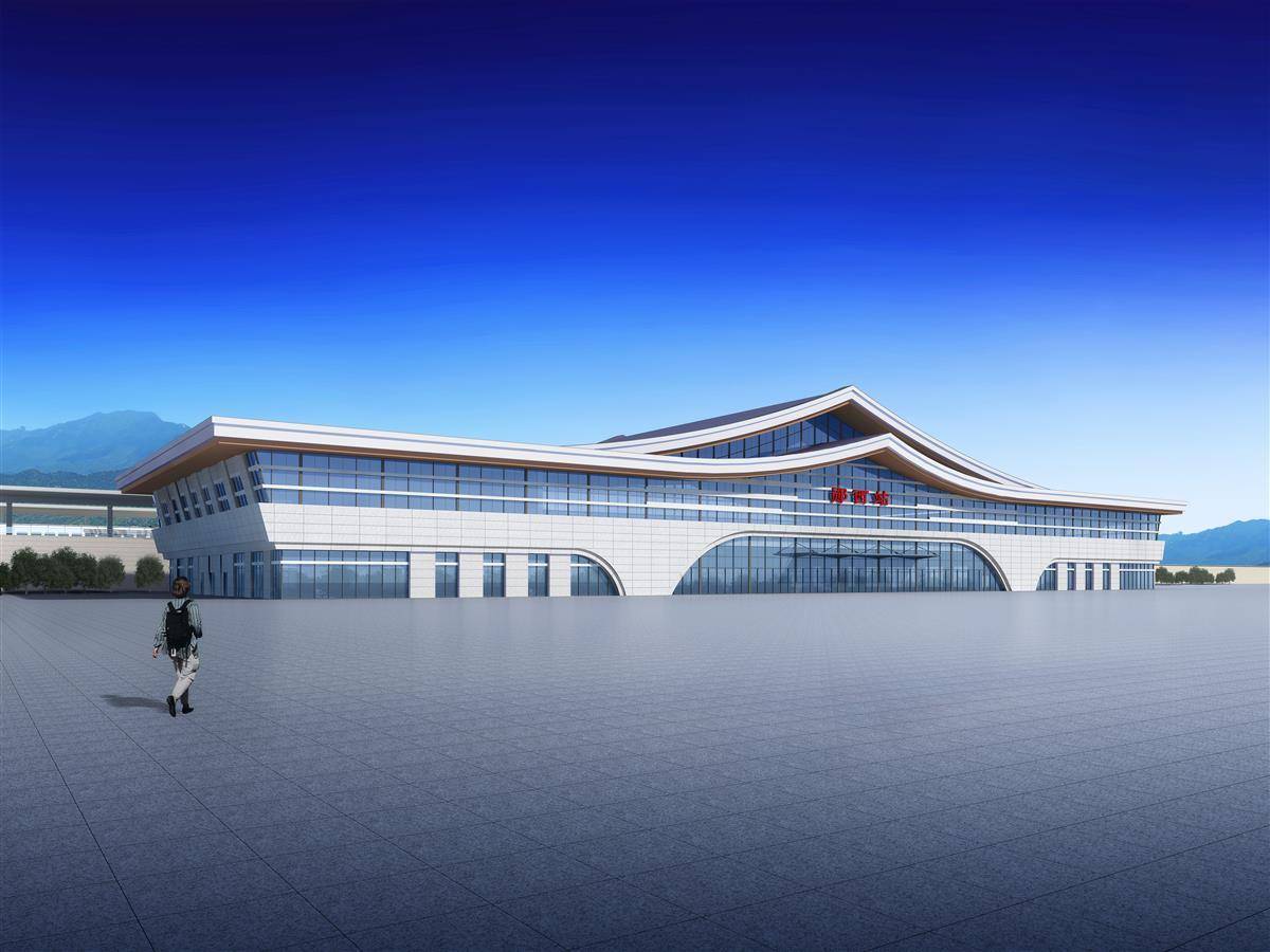 该站房以“秦楚门户,山水郧西”为构思立意,优美的屋顶曲线同两侧舒展飘逸的水平线条构成站房整体形态,与周边山水景观融为一体,表现城市腾飞姿态。站房主体结构为钢筋混凝土框架结构,屋盖为钢结构,建筑面积9990平方米,站场设计规模2台4线,站台雨棚投影建筑面积7639平方米,最高可容纳800人同时候车。