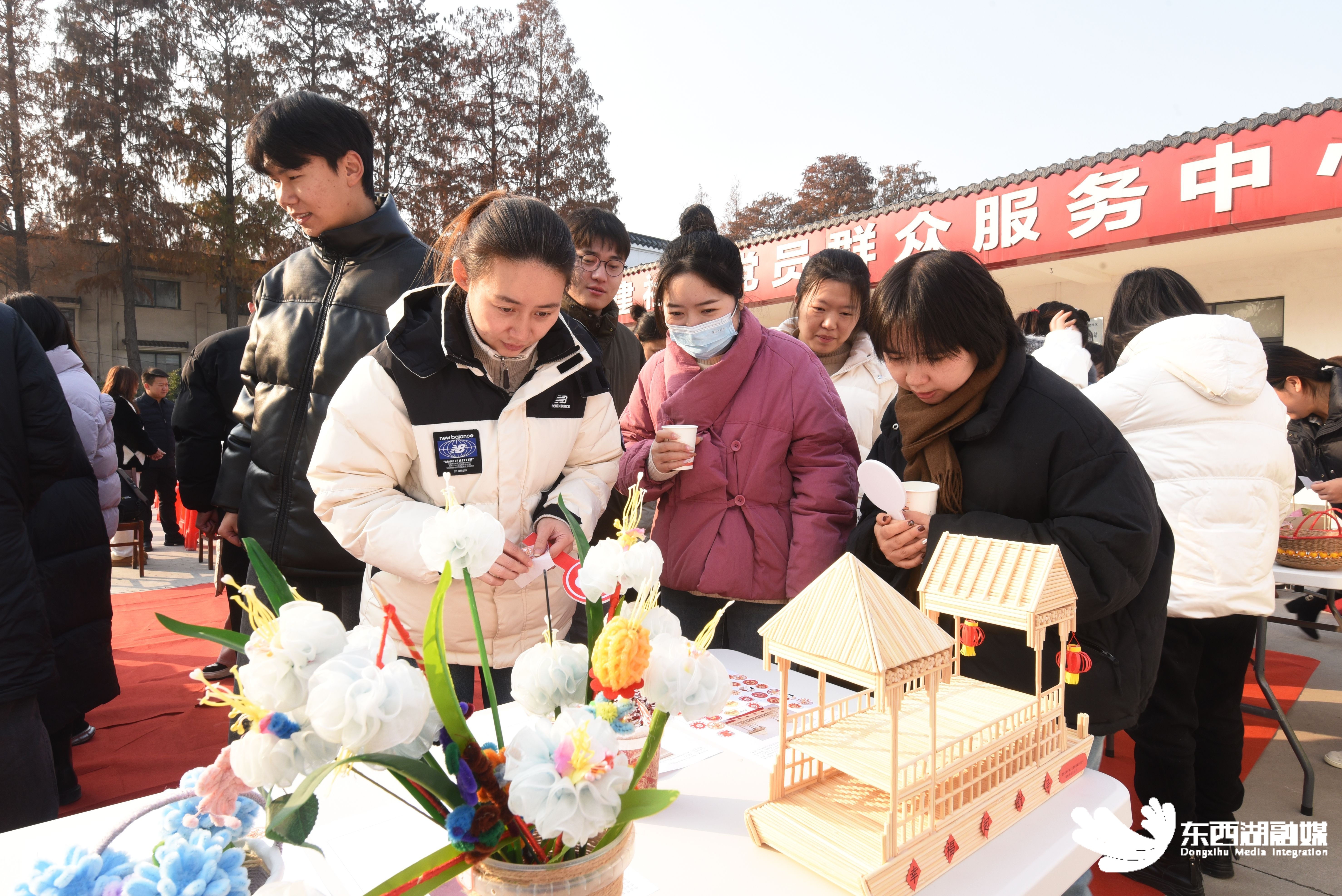 所有参展作品均继续参加了随后的义卖活动,其中利用麻绳、外卖袋编制而成的“聚宝盆”水果篮最受欢迎,现场群众争先恐后地举手竞拍,新建社区居民张允一举“中标”。“第一眼看到就很喜欢,寓意很好。马上快过年了,正好这个盘子可以出来展示,还挺有创意的。”同样引起张允关注的,还有用扭扭棒边角料和竹签做成的花灯,她表示待会儿还会继续竞拍。