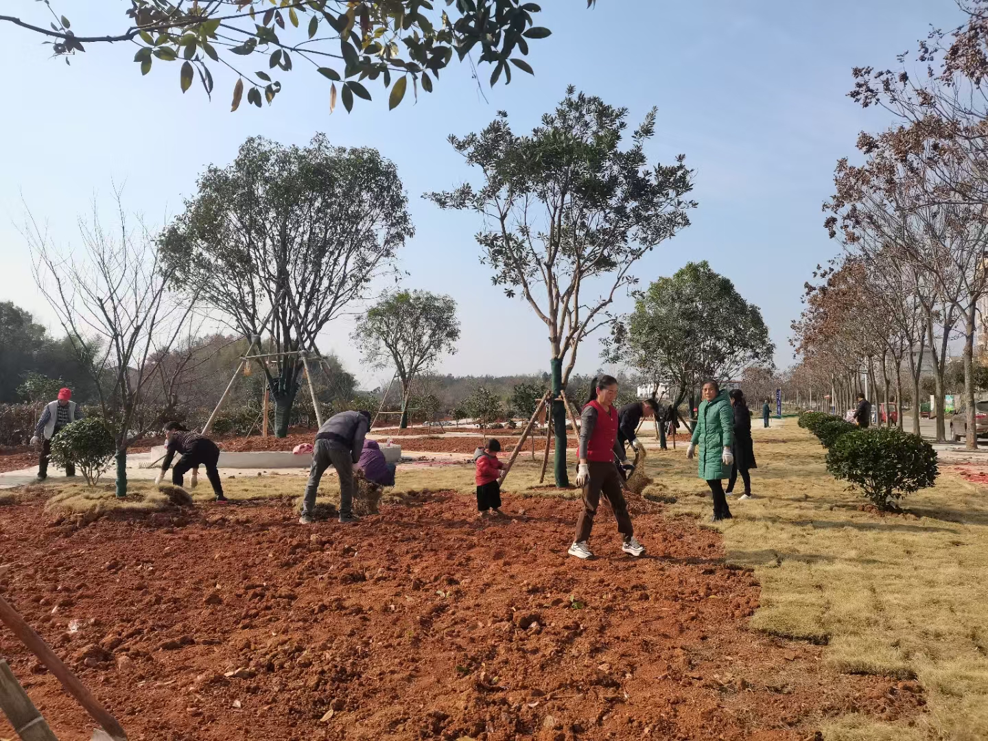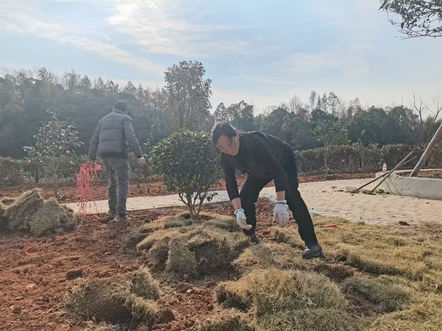 当天,在龙潭村小游园,村干部、党员、“桂乡管家”、居民齐参与,分工有序、人人出力,大家如火如荼地铺设草坪,虽然过程辛苦,但大家的脸上都洋溢着满足和喜悦的笑容。据悉,小游园建设占地4000平方米,需铺设草坪面积2000平方米,目前已动员百余名志愿者投工投劳共同建设。