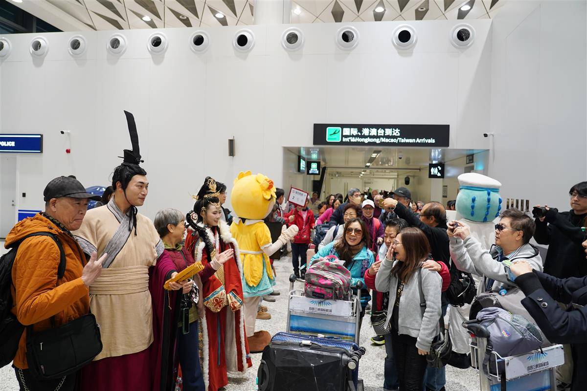 12月17日,从香港直飞宜昌的首趟航班旅客受到热烈欢迎。通讯员 王婷婷 摄