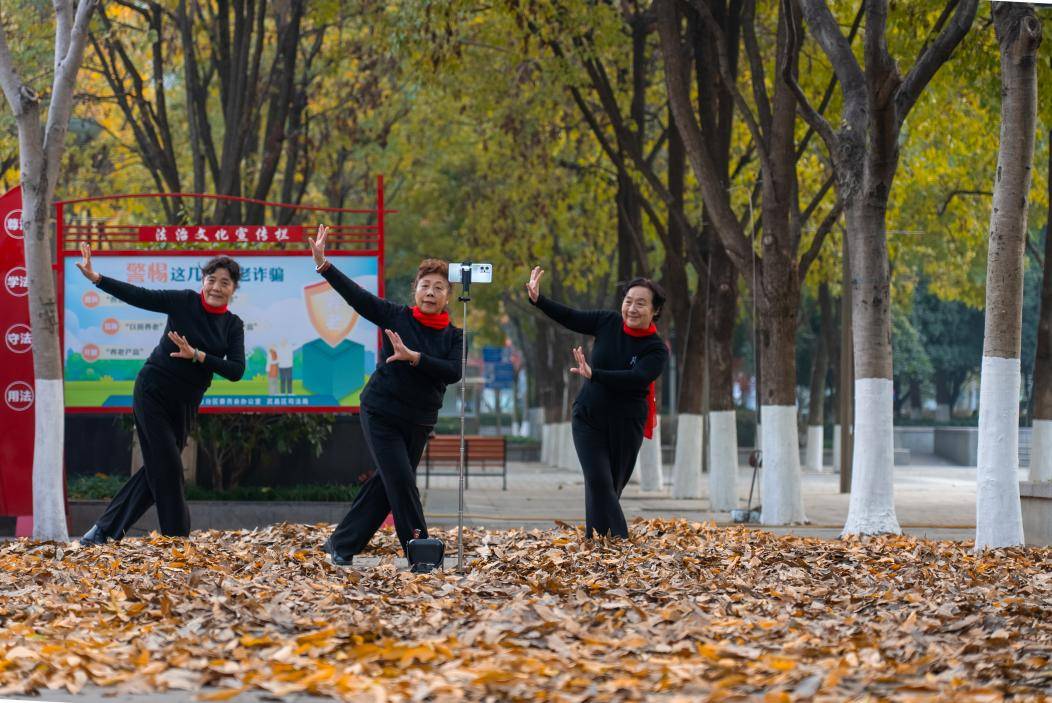为了让市民能够尽情地享受秋冬季节这份落叶的专属浪漫,留住美丽景致,洪山广场连续7年暂缓清扫落叶。