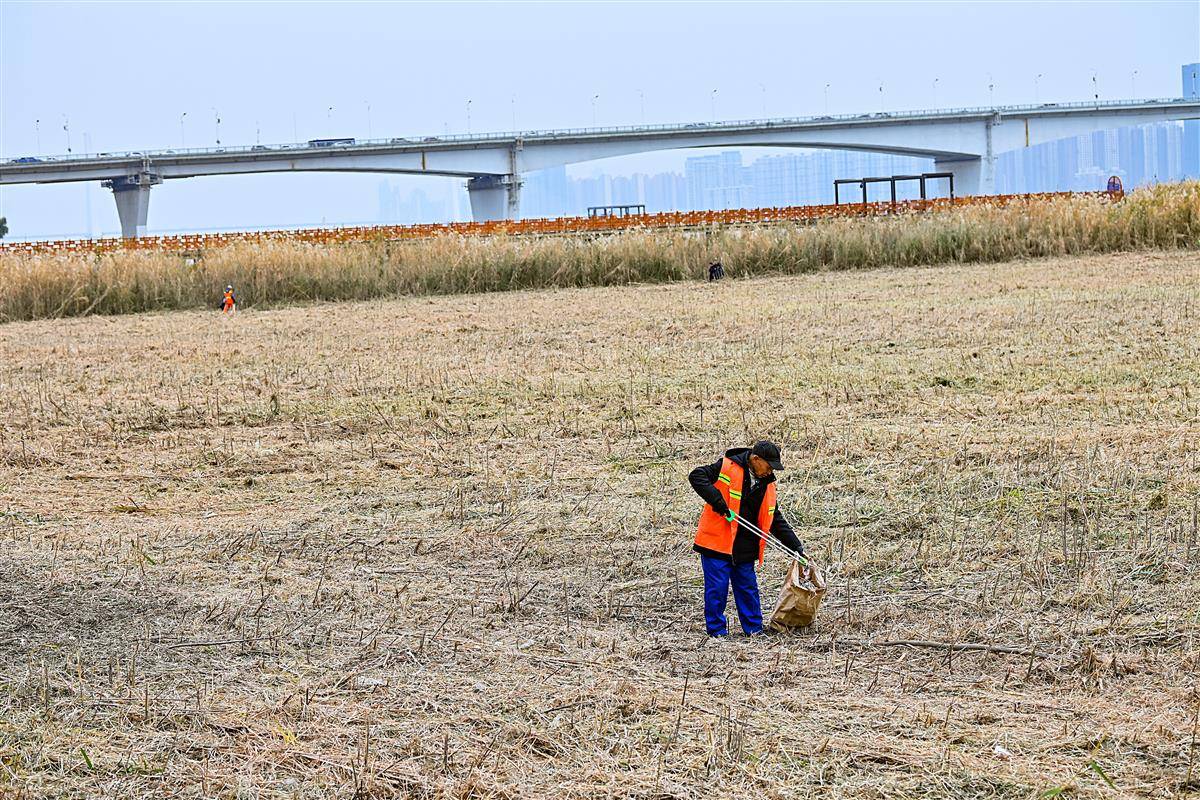 据悉,经历寒潮的风雨之后,曾经蓬勃生长的芦苇已经败落,有较大的火灾隐患。江滩管理部门及时收割芦苇是对芦苇地最好的养护。汉口江滩十里芦苇化作泥,只待明年春风唤新绿。