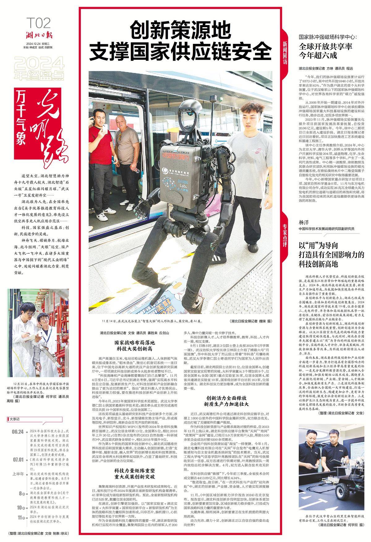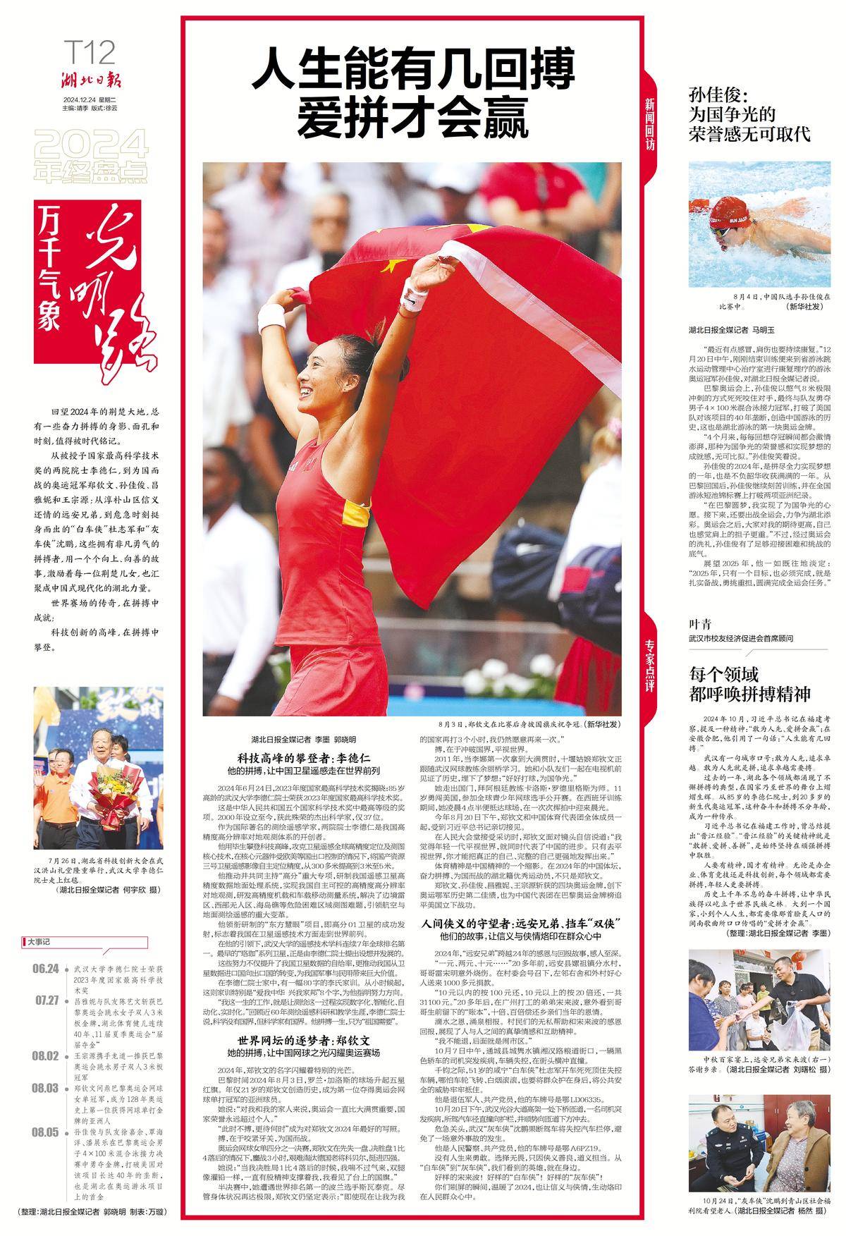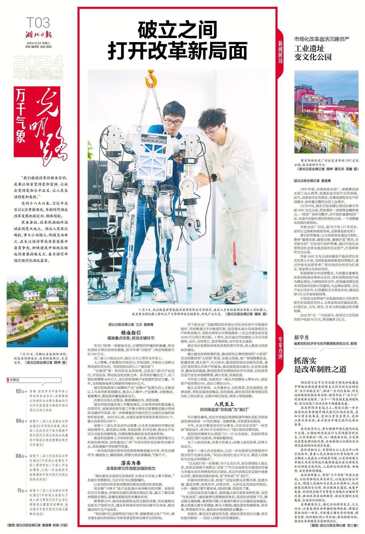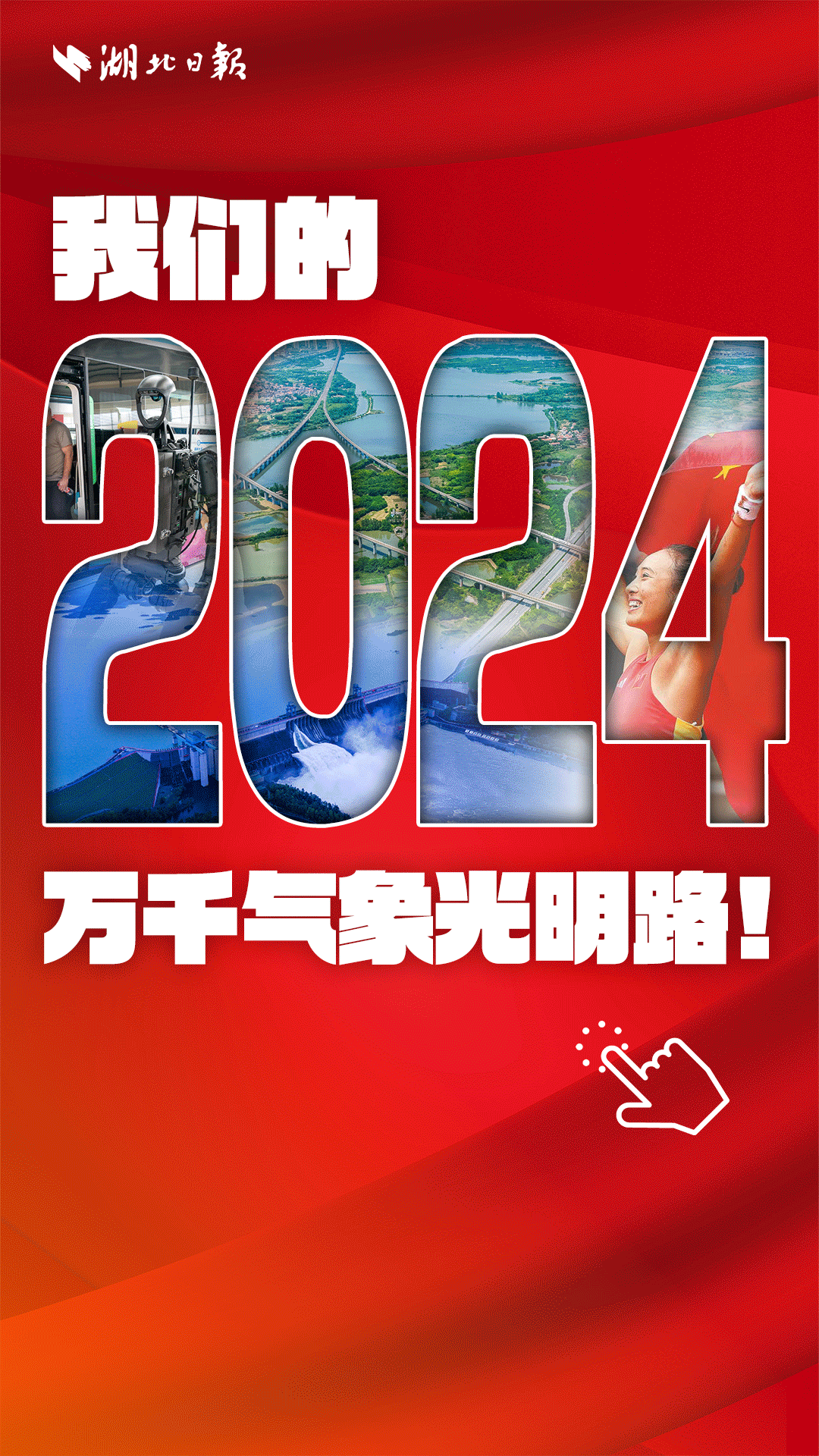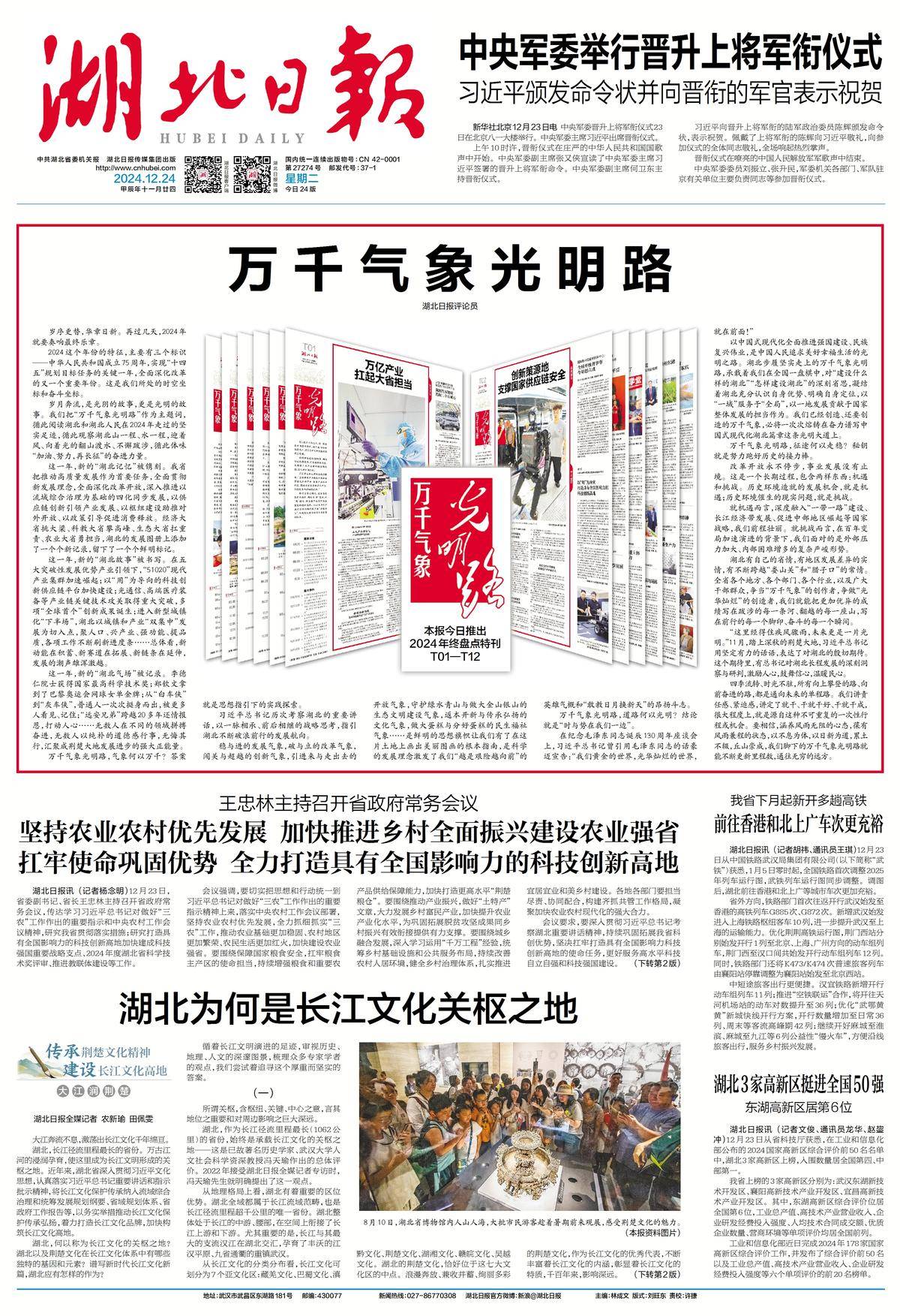 岁月奔流,是光阴的故事,更是光明的故事。我们把“万千气象光明路”作为主题词,循此阅读湖北和湖北人民在2024年走过的坚实足迹,循此观察湖北山一程、水一程,迎着风、向着光的翻山渡水、不懈跋涉,循此体味“加油、努力,再长征”的奋进力量。