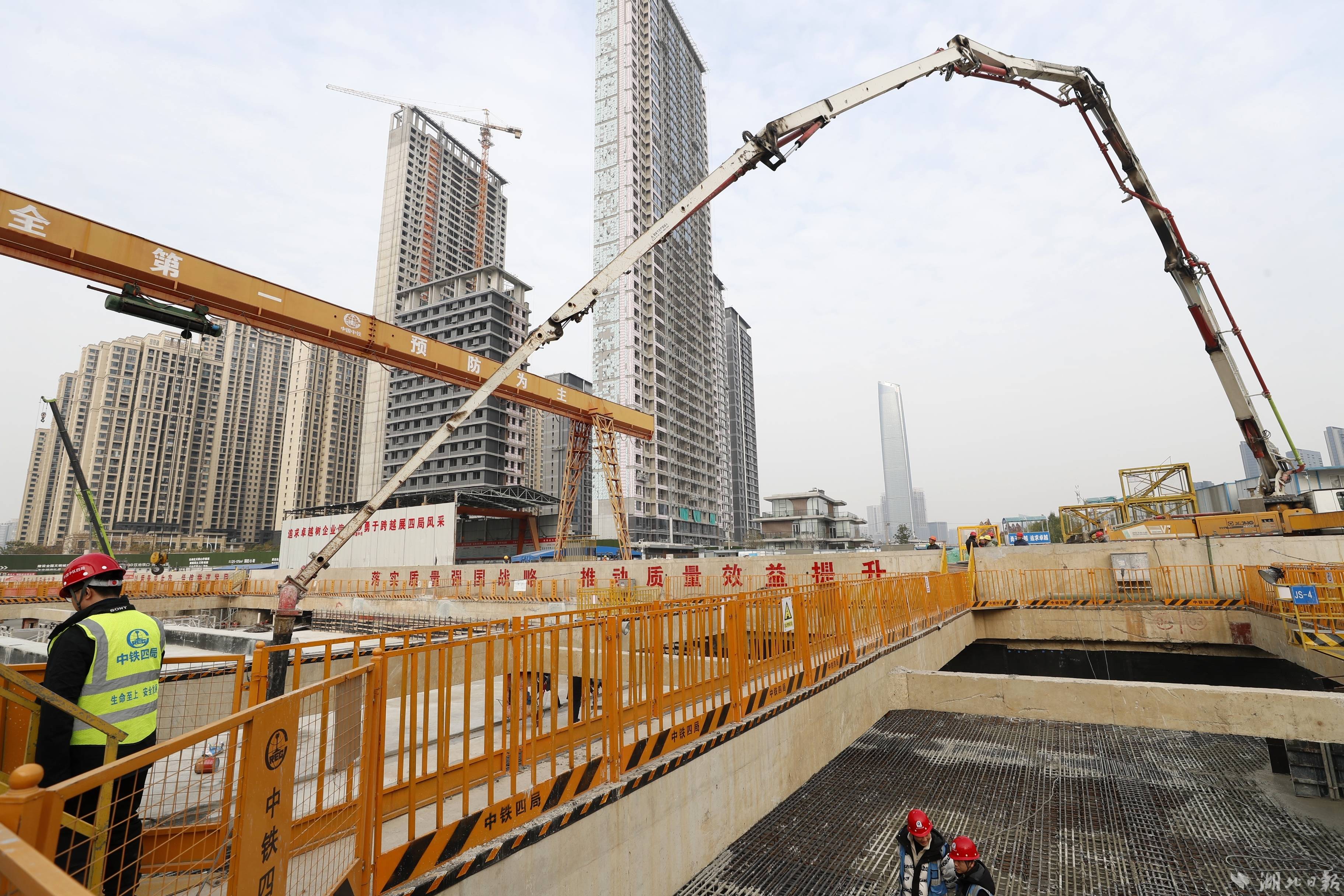 湖北日报讯(记者成熔兴、通讯员姜好、车悦、万楷文)12月23日晚,经过12小时不间断的浇筑作业后,武汉地铁12号线双墩站最后一段顶板顺利完成混凝土浇筑,实现主体结构顺利封顶。该站成为武汉首条地铁环线12号线第23座实现主体结构封顶的车站。