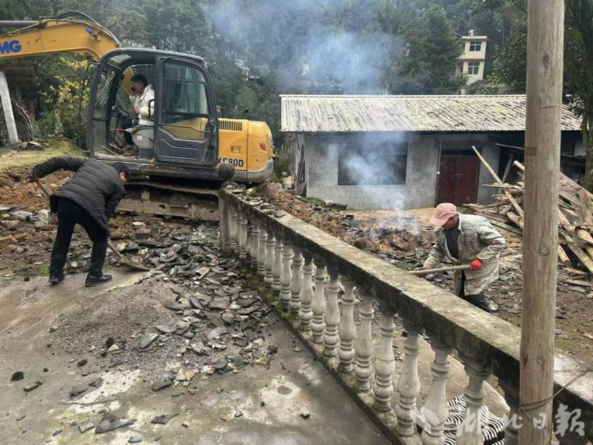湖北日报客户端讯(通讯员全义)12月23日,咸丰县唐崖镇大椿树村组织村民清除道路两旁的砂石土堆、清扫道路及路边杂草。