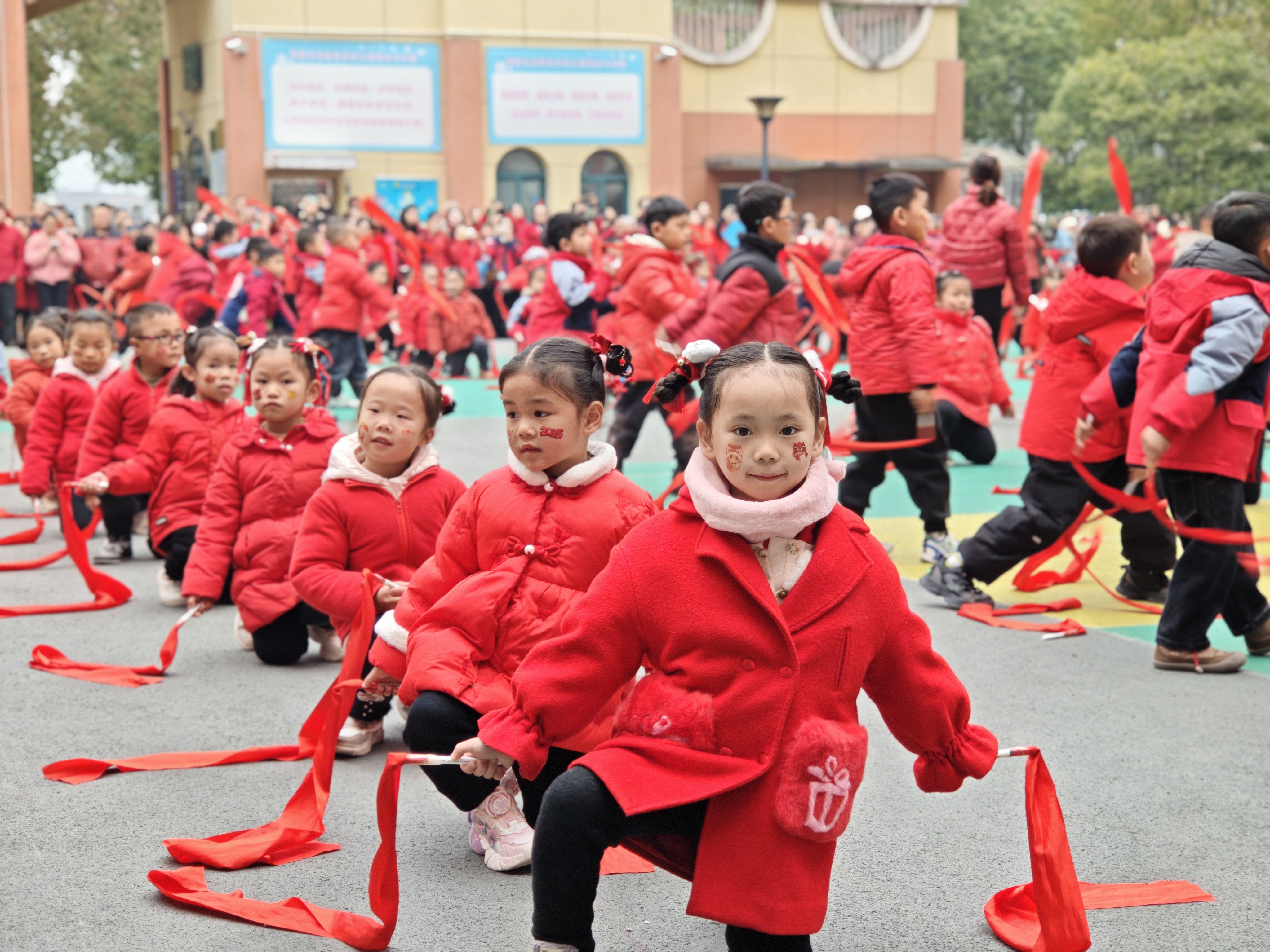 随着激昂的鼓点响起,老师们身着传统服饰,手持大鼓,敲打出新年的节奏。小朋友们高举红绸,随着欢快的音乐翩翩起舞。亲子舞蹈环节,家长与孩子们手拉手,共同舞出了温馨而动人的旋律。