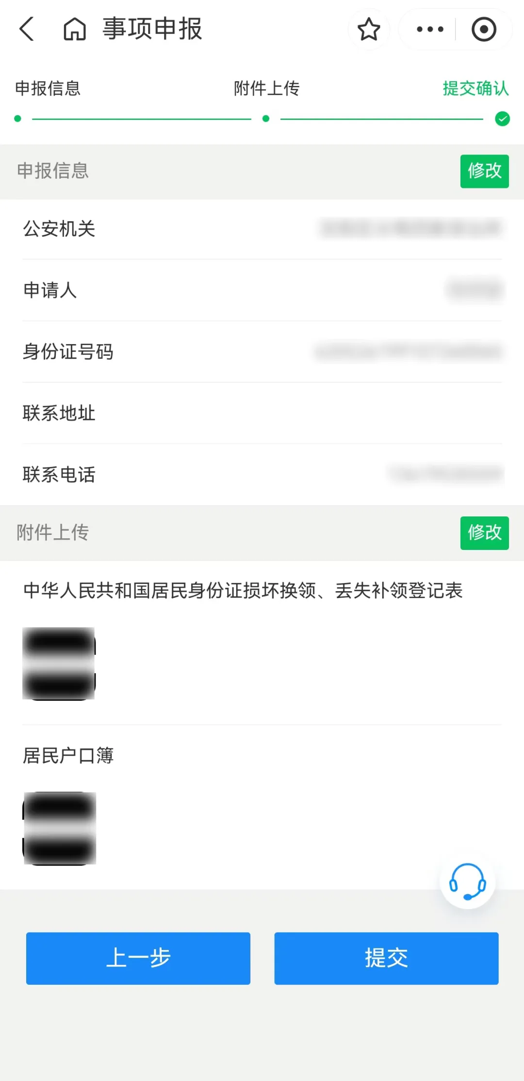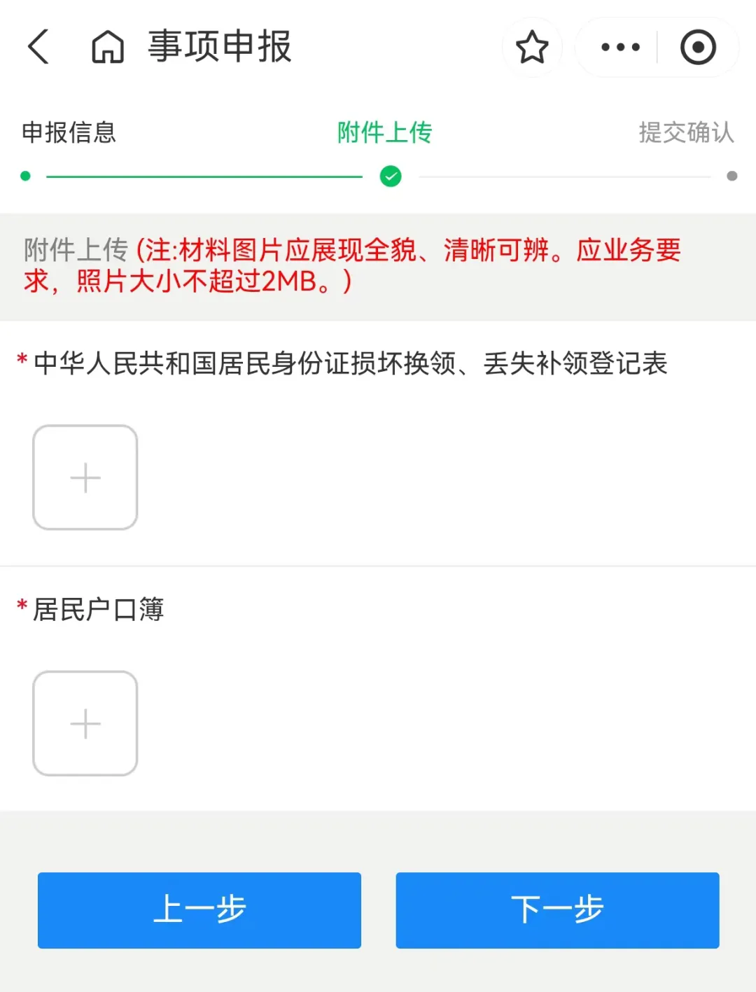上传已准备好的申报材料,表格需要打印后手写信息再拍照上传,确认后点击“下一步”,再次核对相关信息,若存在错误可点击“修改”按钮,最终确认后点击“提交”即可完成办理。