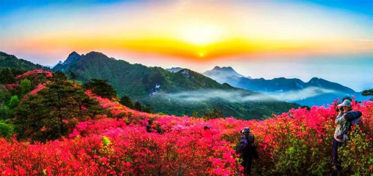 龟峰山景区位于大别山中段南麓,鄂豫皖三省交界处,距离麻城市区27公里,总面积为73.8平方公里。龟峰山由神奇的龟首、雄伟的龟背和灵动的龟尾等九座山峰组成,因其酷似一只昂首吞日的神龟而得名。龟峰山有连片10万亩古杜鹃群落,其面积之大、年代之久、密度之高、品种之纯、花色之美,可谓中华一绝、世界罕见。龟峰山杜鹃花海是北纬30度最美红飘带;景区山清水秀,环境优美,空气清新,森林覆盖率高达95%,享有“绿色宝库”和“天然氧吧”的美誉。龟峰山景区是大别山世界地质公园核心园区、国家生态旅游示范区,是全国森林康养基地试点建设单位、国家国土资源科普基地。