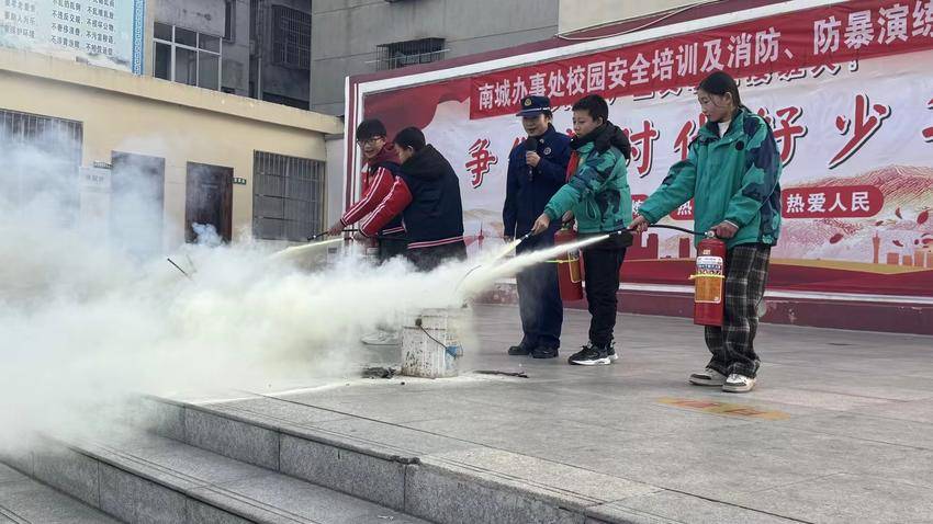 同时,消防工作人员现场演示了灭火器的正确使用;部分师生代表亲自体验灭火操作,增强了实际应对火灾的技能。