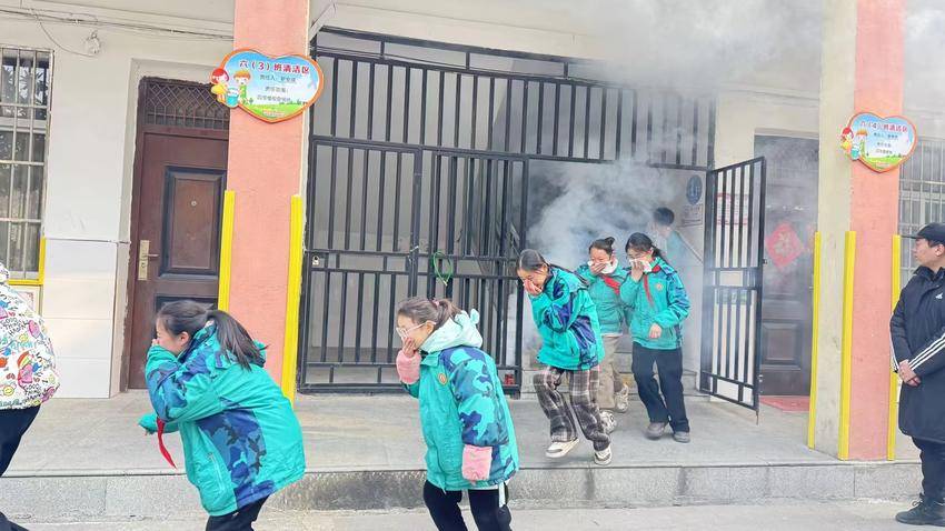随后的演练环节将活动推向高潮。消防警报拉响后,师生们迅速用湿毛巾捂住口鼻,沿着既定疏散路线有序撤离教学楼,到达操场集合,整个过程紧张而有序,充分展现了师生们良好的应急反应能力。