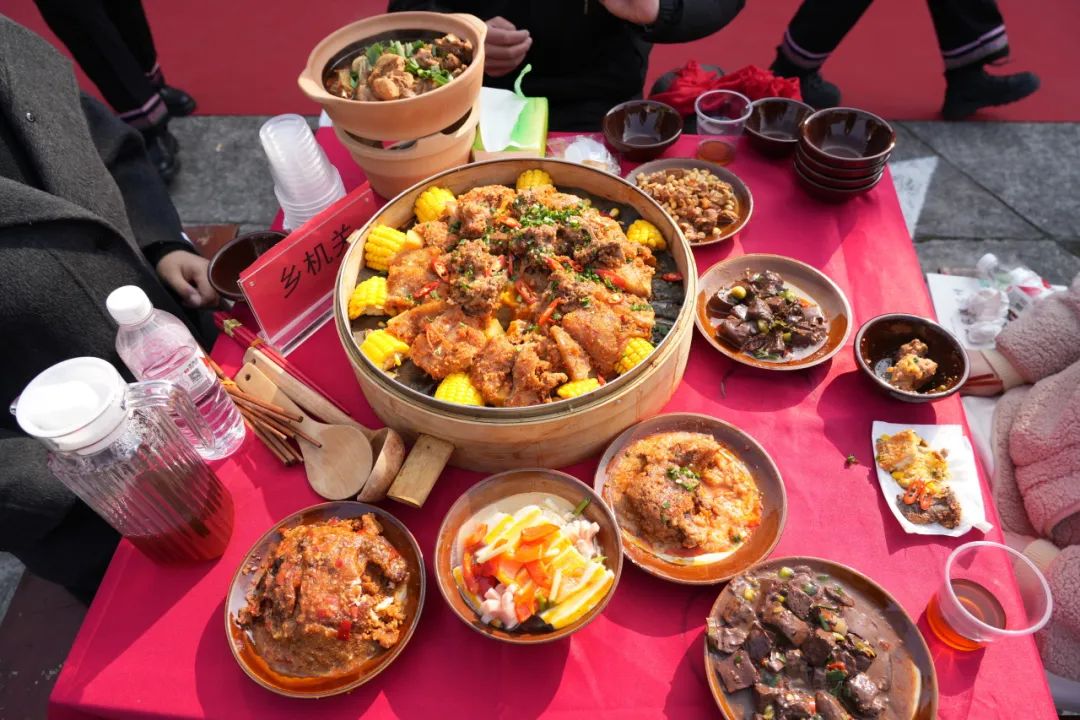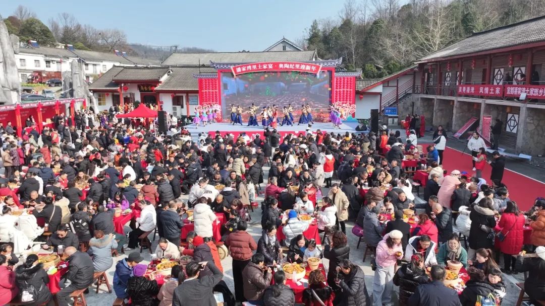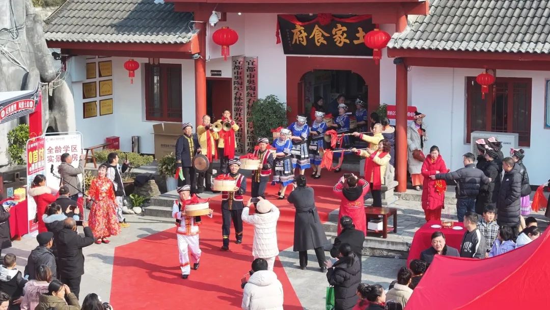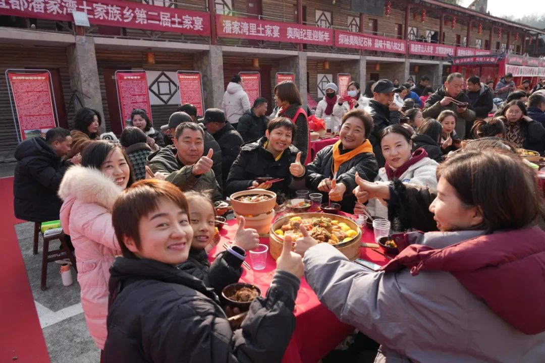 湖北日报客户端讯(通讯员 朱敏 江传堃 廖贤丹 邹宇佳 向倩)12月28日,宜都市潘家湾里土家宴·奥陶纪里迎新年暨宜都市潘家湾土家族乡第二届土家宴举行。千余名村民游客欢聚一堂,品美味、庆丰收、迎新年。