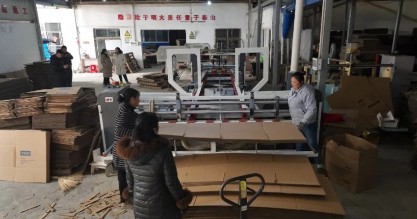 湖北思普瑞包装材料有限公司负责人冯丽琴说,我们一般的是纸板放上去,机械自动放,自己出来,然后粘箱也是自动放上去,自己出来,现在的机械一般还是比较先进。