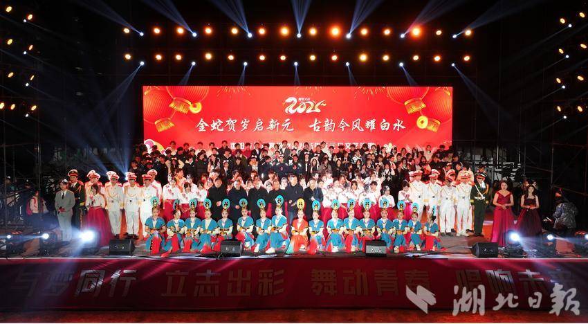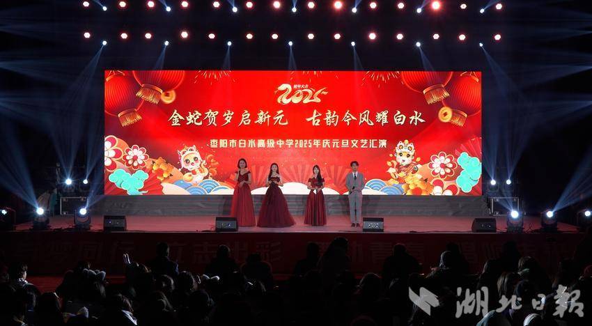 湖北日报客户端讯(通讯员谢红泽)辰龙辞岁,巳蛇迎新。12月29日晚,枣阳市白水高级中学举办了庆祝2025年元旦晚会。全校师生欢聚一堂,共同迎接新年的到来。