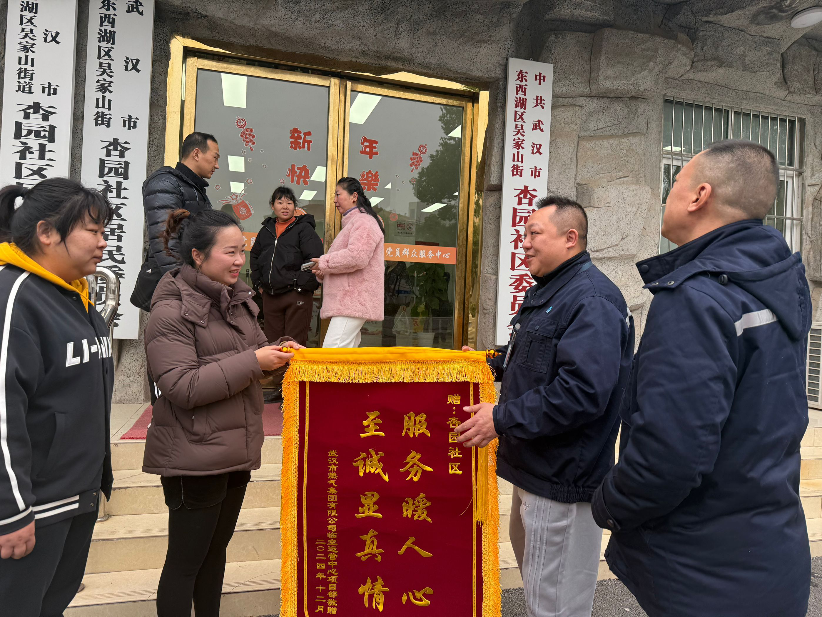 湖北日报客户端讯 (通讯员 刘菁)12月30日,武汉市燃气集团有限公司临空港运营中心项目部为吴家山街杏园社区送来了一面写有“服务暖人心至诚显真诚”的锦旗,对杏园社区在红杏村老旧小区燃气改造工作中的全力相助表示诚挚谢意。