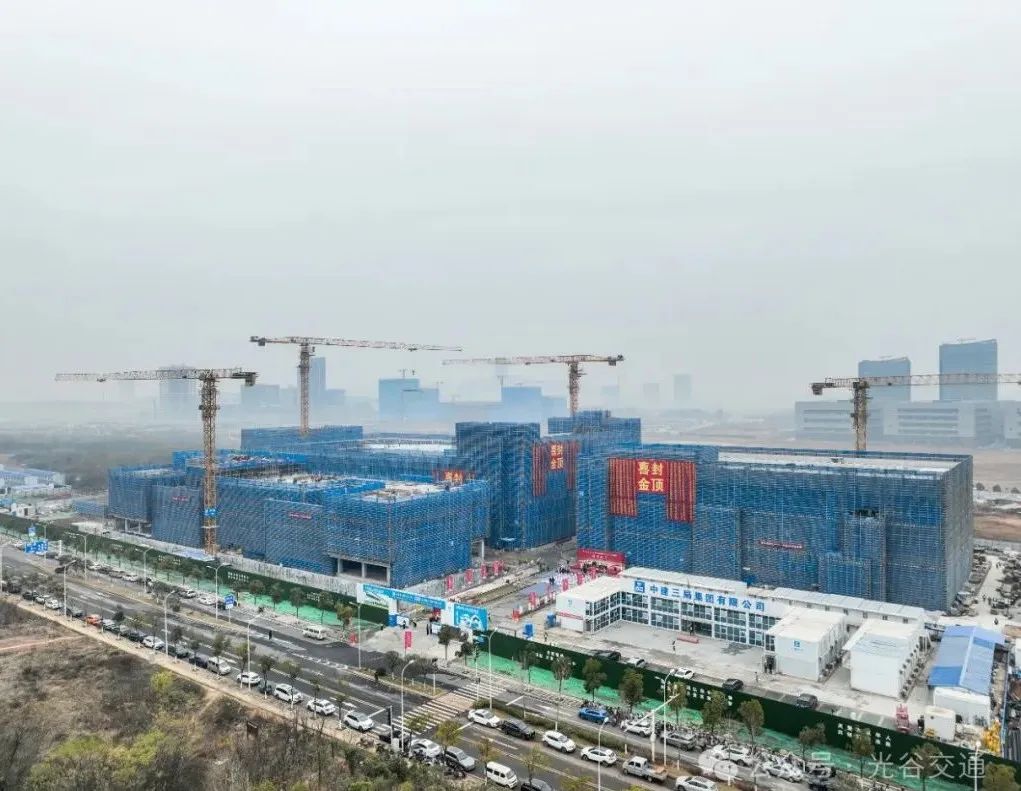 日前,由光谷交通投资建设、中建三局施工的武汉新城又一重点项目——光芯产业园,迎来了重要的里程碑,10万平方米的建筑群全面封顶。