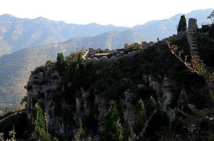 淄博市的齐长城,穿越了云明山、盘龙山、潭溪山等山脉和丘陵,最高的城墙不过海拔800多米,地貌相当复杂,很便于伏击。看过老电影《南征北战》的人都会记得,摩天岭争夺战的情景,那摩天岭上的石砌掩体,就是古老的齐长城。遗憾的是,历史有时是一本糊涂账,央视大型纪录片《望长城》,似乎就遗漏了这一段齐长城。