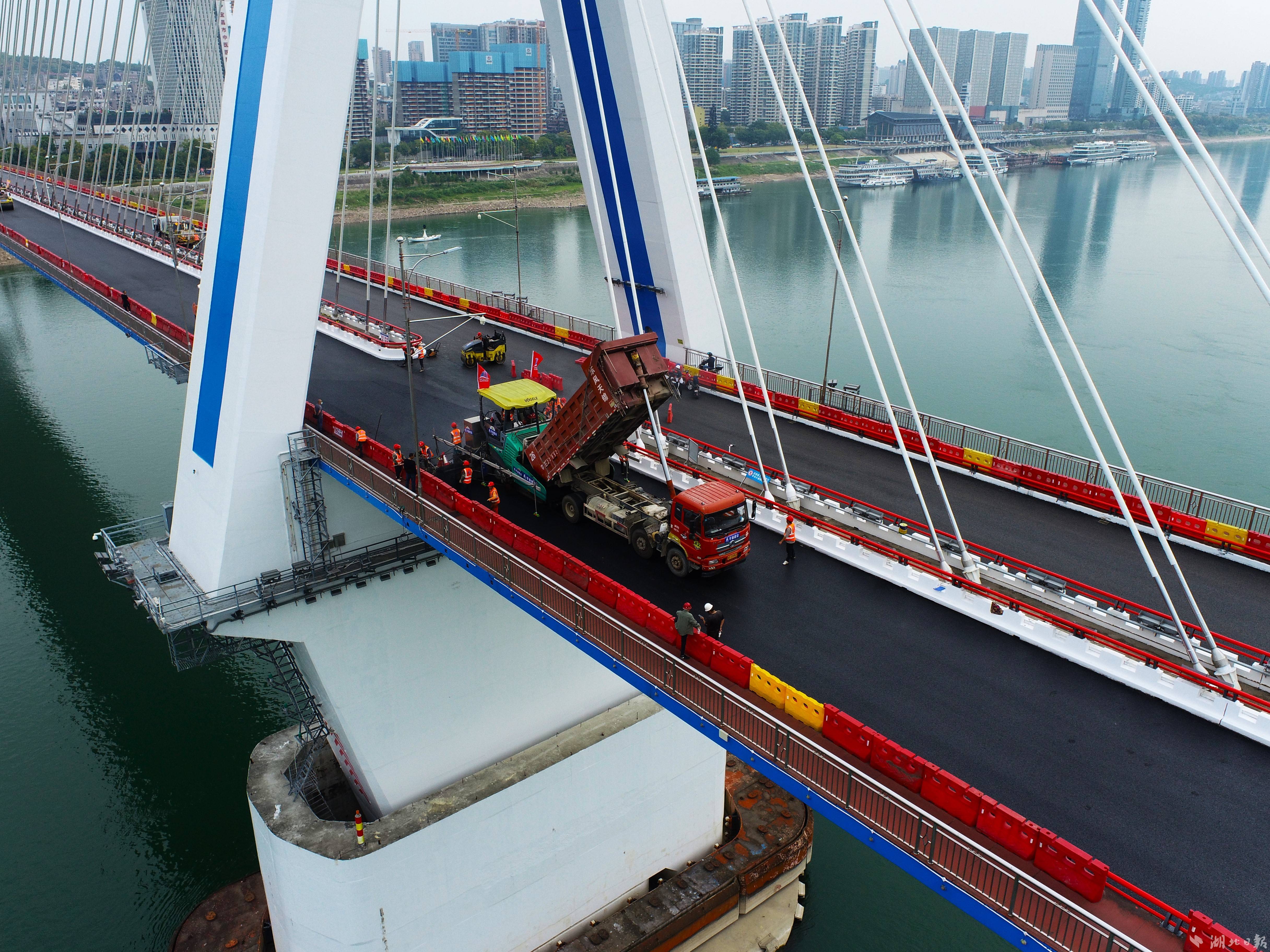 去年10月,因斜拉索达到设计使用年限,该桥启动焕新工程。该工程为国内首座三塔中央索面钢绞线拉索全桥更换工程,由宜昌城发集团长江大桥建设营运公司负责建设、中铁大桥勘测设计院设计、中铁大桥局施工。