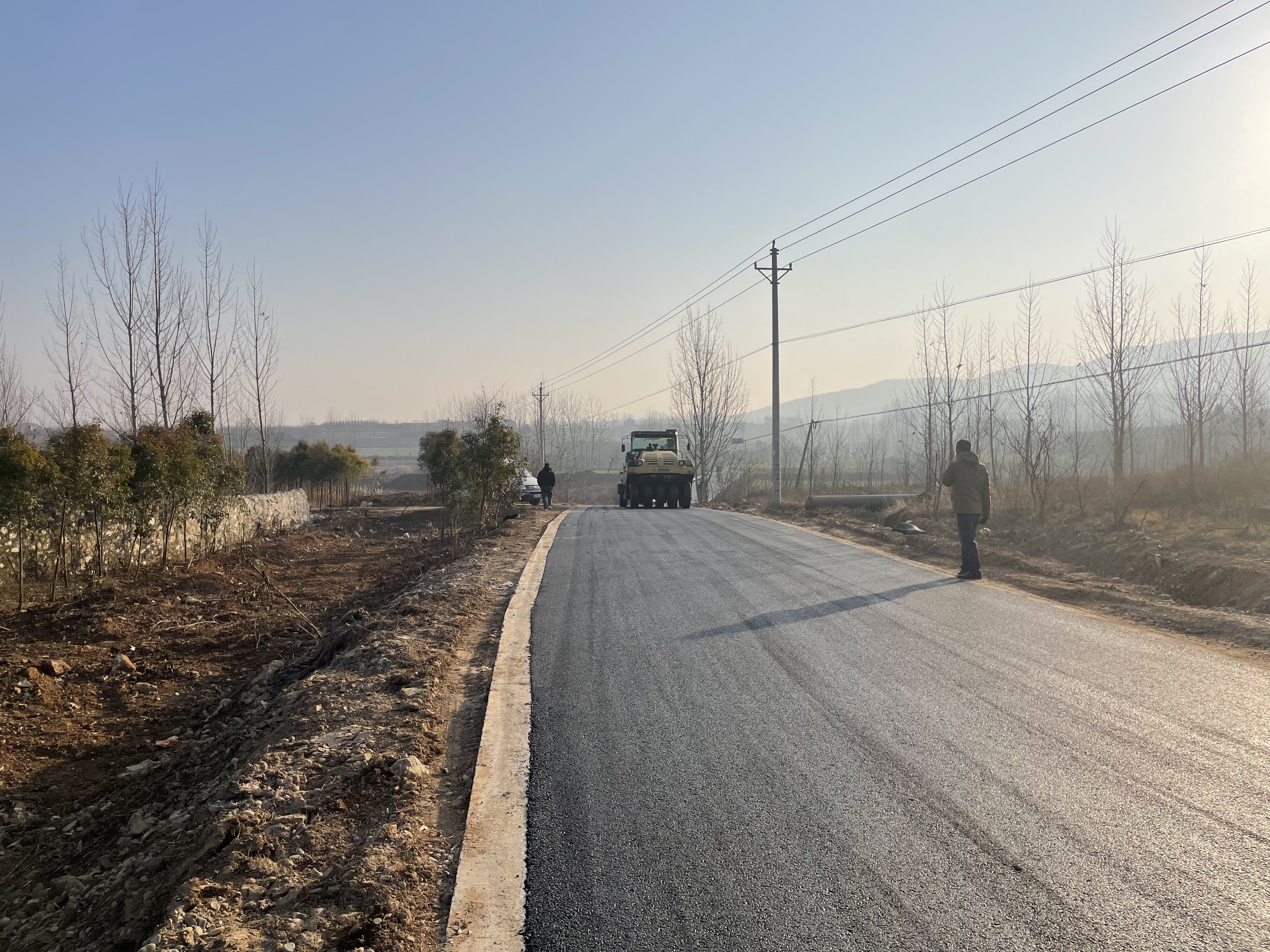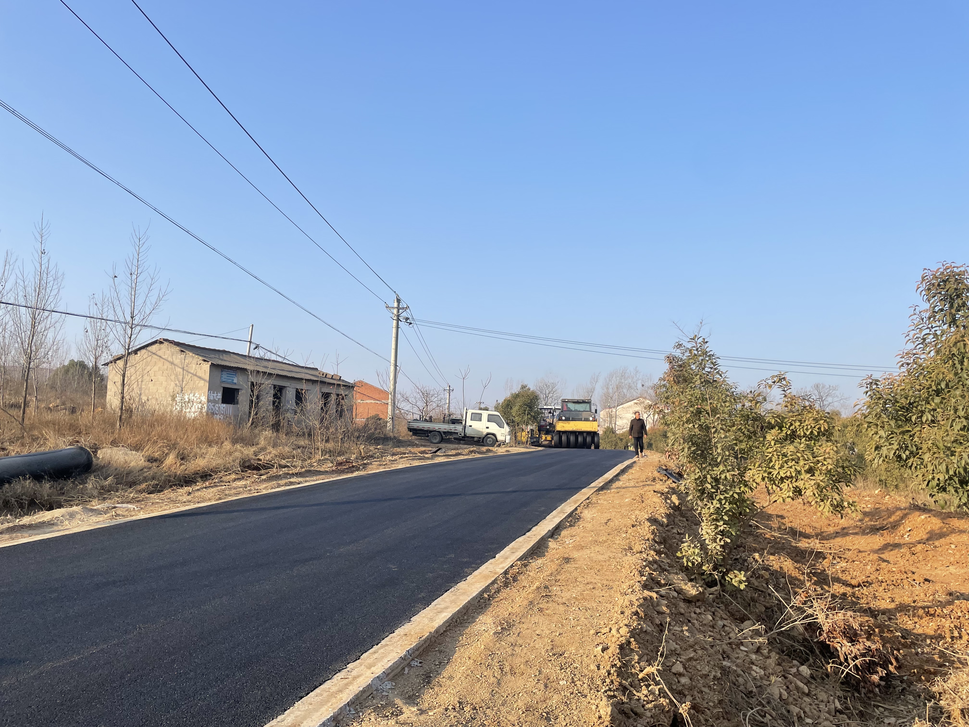 施工现场,摊铺机、压路机等大型机械有序作业,工人们忙碌地铺设着沥青。严格把控厚度与平整度,打造出坚固耐用的路面。据了解,此次道路改造,提升楼子庄村至雷家庄通村道路5.5公里;修复部分破损路面,并将原有3.5米-4米宽水泥路加宽至5米-5.5米。