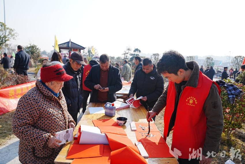 送春联现场墨香四溢,书法爱好者们挥毫泼墨,笔走龙蛇。一幅幅饱含新春祝福的春联跃然纸上,“春临大地百花艳,节至人间万象新”“福旺财旺运气旺,家兴人兴事业兴”等吉祥话语,寄托着村民们对新年的美好祈愿。火红的春联映衬着村民的幸福笑脸,文化的气息在这一笔一划间流淌,传统民俗文化在乡村得以传承与弘扬。