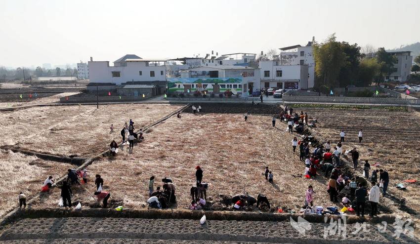 据了解,肖岭乡白马村种植马蹄的传统由来已久,是崇阳县马蹄的主产地。由于当地的气候和沙土条件适合马蹄生长,所以种出来的马蹄品质优良、脆甜多汁,已成为当地的特色农产品名片,深受广大消费者的青睐。白马村党支部书记雷成名介绍,今年村里共种植马蹄1000亩,采摘期从2024年12月底直至2025年2月,亩产达4000斤,销售额预计可达450万元。通过乡村文化节这一平台,进一步拓宽销售渠道,助力农民增收致富,让这小小的马蹄成为乡村产业振兴的“金疙瘩”。