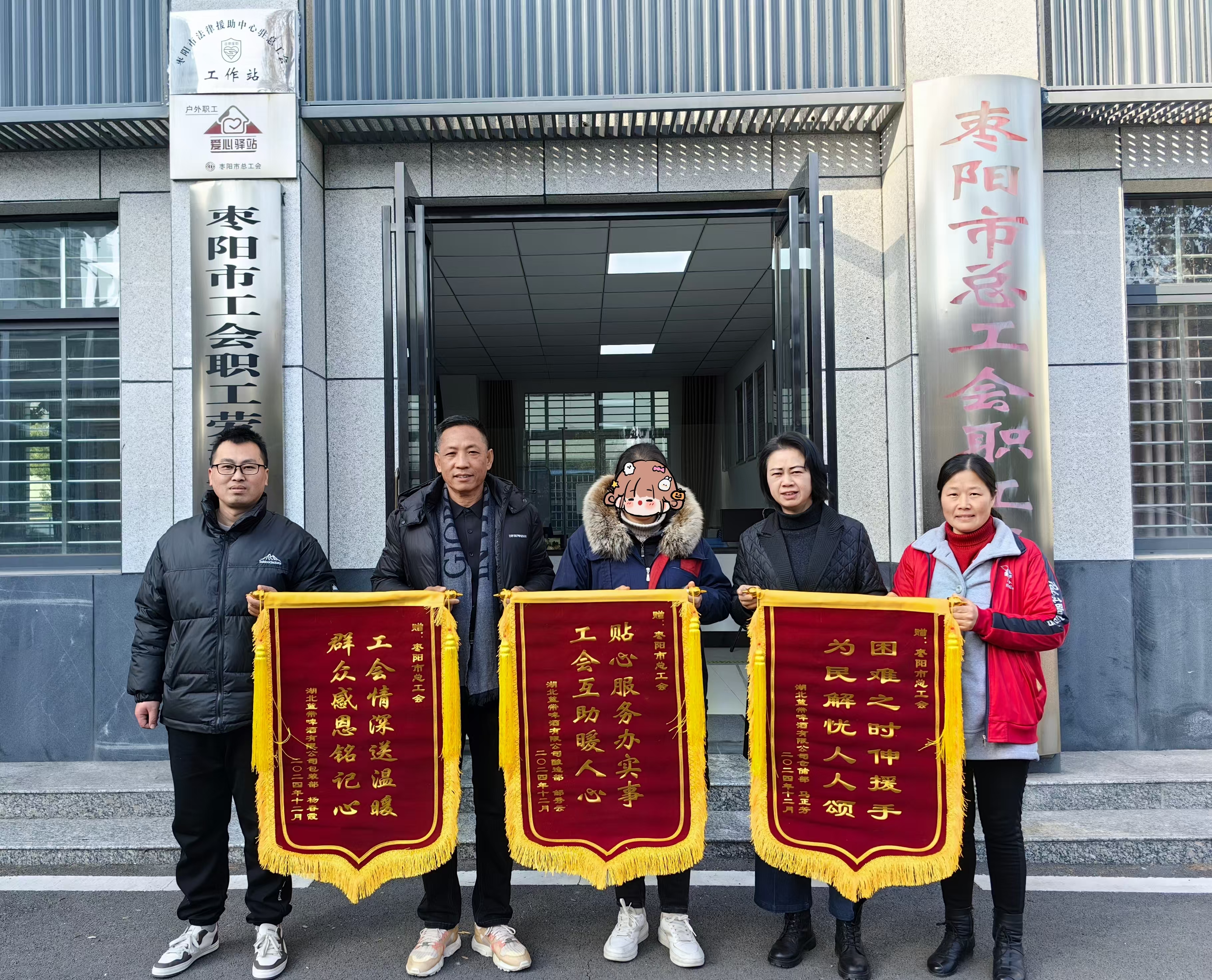 湖北日报客户端讯(通讯员张晓娥)“工会真是我们困难职工的‘贴心人’,在我们最艰难的时候伸出援手,给予我们温暖和希望,太感谢你们了!”12月31日,湖北蓝带啤酒有限公司工会主席与困难职工代表马某向枣阳市总工会送来了三面锦旗,衷心感谢市总工会对他们的关怀与帮扶。