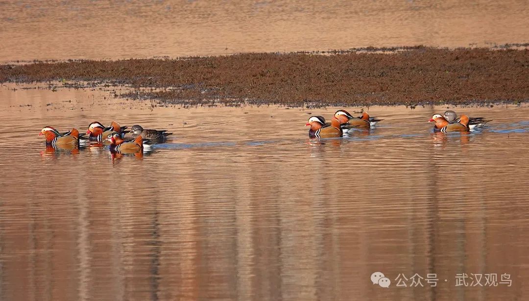 第二天的行程主要是在绿道沿途观鸟,也是发现鸟种最多的一天,金色的阳光洒在云雾缭绕的湖面,成群的鸳鸯、绿头鸭游弋、觅食,松弛感满满,我们也是尽情地拍。这次也让我领略到大师是怎么拍出成功的照片的,火焰大师为了精美的照片,下到浅滩慢慢靠近,先是半蹲着,接着继续靠近,最后干脆席地而坐,沉浸式的拍起来,果然不是人人都能成为大师的。