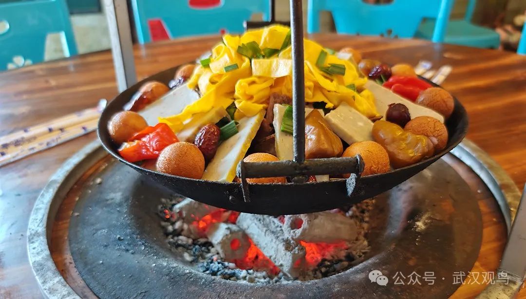 从武汉到天堂湖历时3小时车程,路程虽远,却一点也不影响我对这次行程的满心期待,因为那里有水中大熊猫——中华秋沙鸭,有鸳鸯和成群的黑鸢,最想看到还是心心念念的猫猫——斑头鸺鹠。到了目的地,最先体验的是当地美食——吊锅,大家围着烧得红红的火炉,吃着店里自家养的土猪肉吊锅,一扫旅途劳顿的疲惫感。