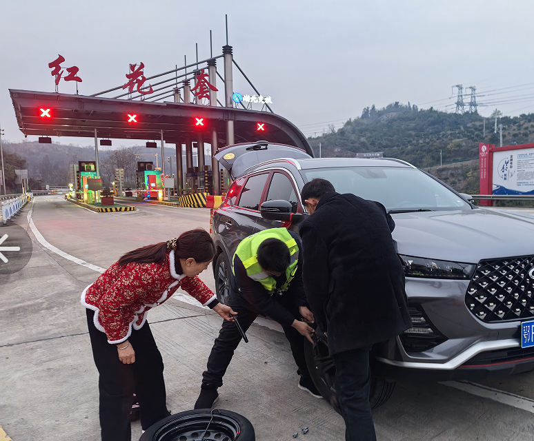 湖北日报客户端讯(通讯员 谢沁园)1 月 2 日凌晨 6 时,元旦假期刚过,一辆小客车在红花套收费站广场戛然而止,宁静的氛围瞬间被打破,车辆停滞不前。执勤人员听到尖锐的刹车声后,火速奔赴现场,只见车主神色焦虑且无助。工作人员当即向现场管理员汇报,管理员迅速赶到,先是温和地安抚车主的情绪,随后便认真细致地排查车辆故障。一番检查后发现,车辆右前胎已损坏,无法正常行驶。管理员果断采取行动,有条不紊地帮助司机更换备胎,其他工作人员也心领神会、默契协作,不多时便让车辆恢复了正常行驶状态。