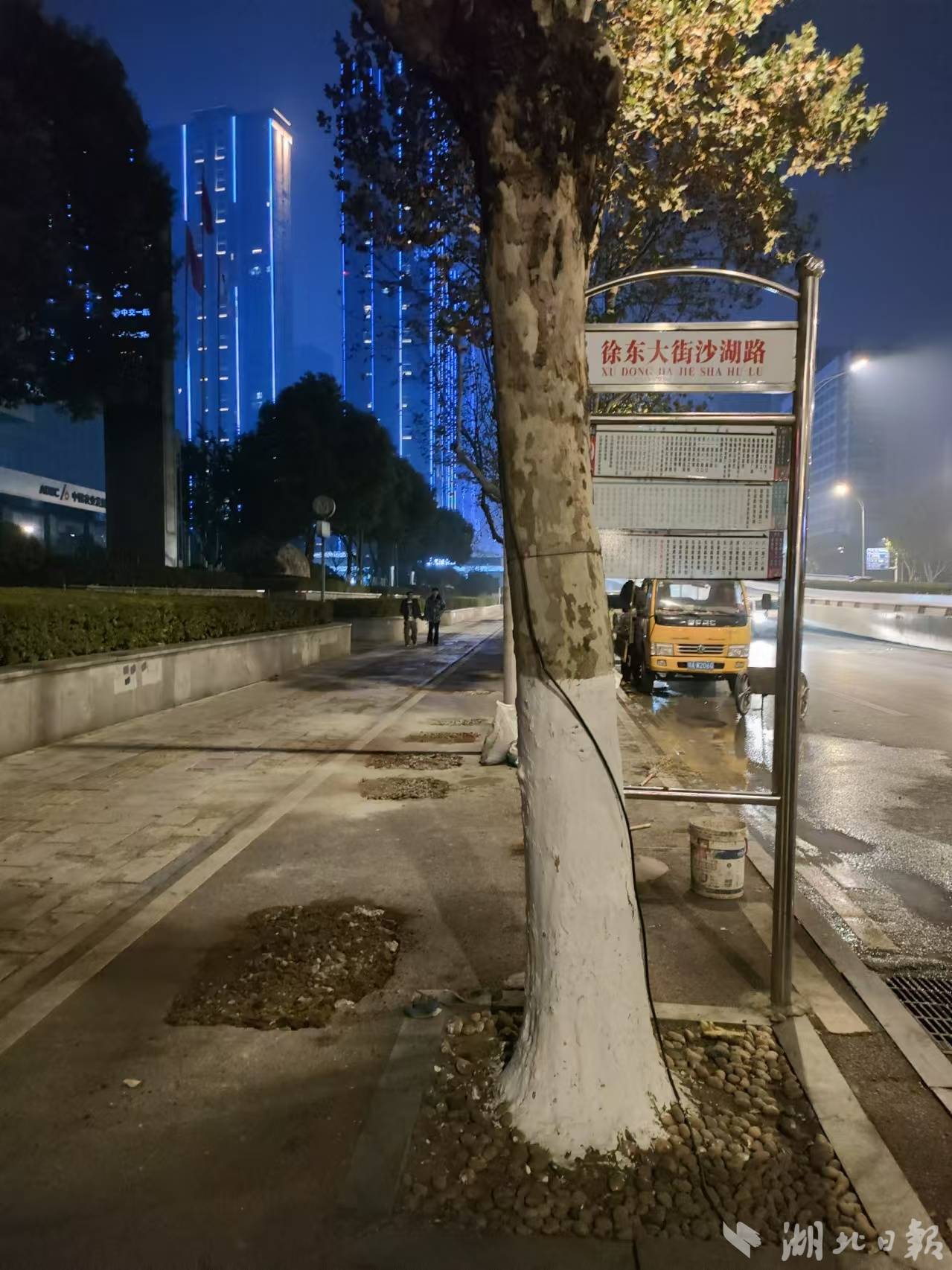公交集团投资建设公司安全工程部刘钢部长向记者介绍,沙湖路站台的迁移分两步,先建好临时站台基座,待基座下混凝土干透,再拆除智能公交站棚,迁移至新站台重新焊接安装,工程约需一周时间。由于白天站台乘客多、停靠车辆多,迁移工作在夜间进行。