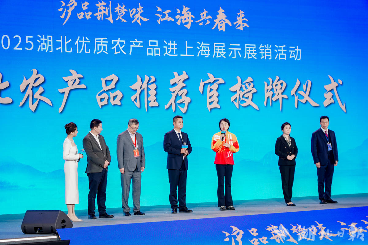 英姿飒爽的奥运冠军赵芸蕾来到活动现场,成为湖北优质农产品推介官。
