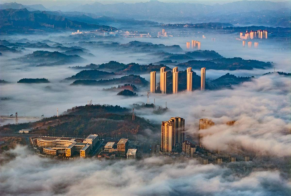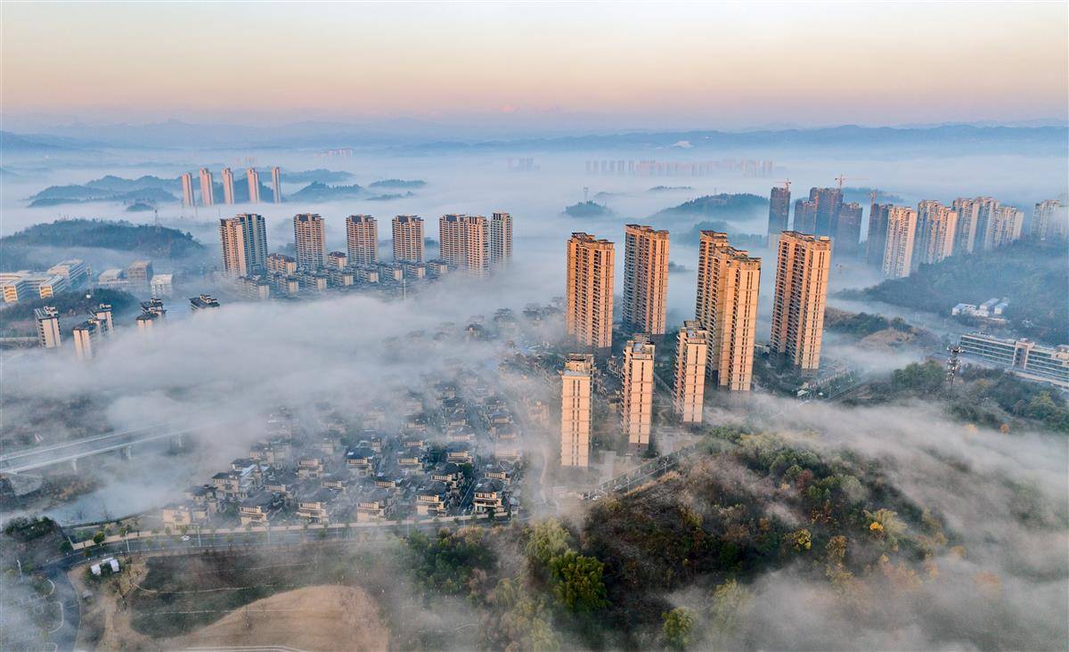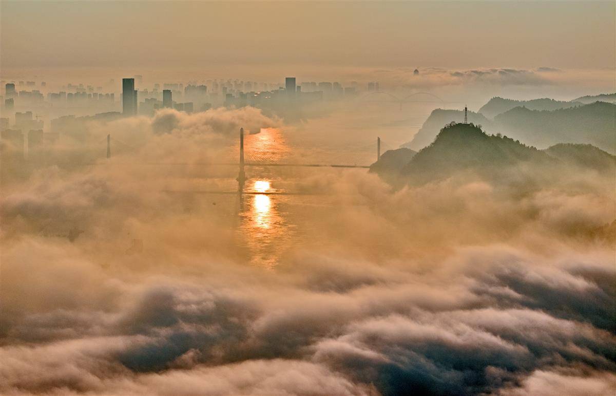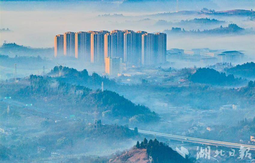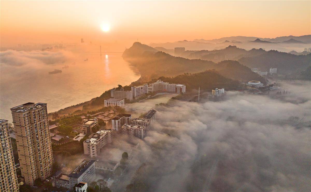 寒冷的小寒时节,雾锁宜昌,氤氲的晨雾与穿城而过的长江构成一道独特的景观,雾中的峡江城市如诗如画。(湖北日报全媒记者刘曙松摄)