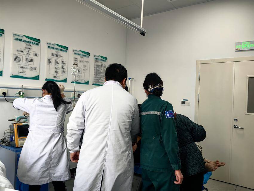 一场与时间赛跑的生命救援随即展开。值班员迅速行动,一边联系急诊科护士准备急救床位、通知当班医生,一边向分管院长汇报情况。面罩给氧、建立另一条静脉通路、对症给药、心电图检查、导尿……一系列紧张而有序的抢救措施迅速施行。在双方医护人员的齐心努力下,病人的病情逐渐趋于稳定,随后被转往上级医院进一步救治。