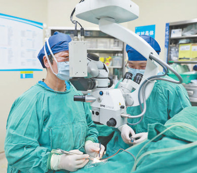 湖南省湘潭市中心医院眼科主任谢梅芬(左)在进行人工晶体植入手术。杨迅 刘超摄影报道