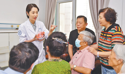 山东省济南市第二人民医院医生为患者和家属讲解人工晶体国家集采政策。郭兆瑞摄