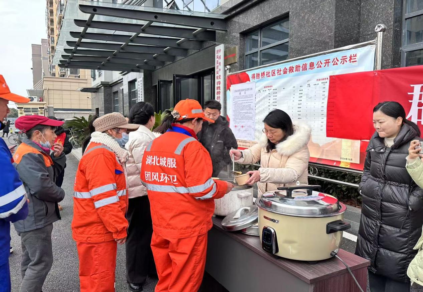 在社区工会驿站,社工部、总工会等部门领导和社区工作人员为环卫、保安、外卖小哥等户外劳动者送上了暖心的腊八粥、银耳汤和热腾腾的煮鸡蛋。在寒冷的冬季,这一碗碗暖心的粥汤不仅温暖了大家的身体,更温暖了他们的心。让他们在寒冷的冬日里感受到了党和政府的温暖与关怀。