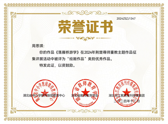 据悉,此次主题作品征集活动作为湖北省2024年教师节系列宣传庆祝活动之一,由湖北省中小学教师继续教育中心、湖北省教师教育学会和湖北长江教育报刊传媒集团联合举办,征集作品以尊师重教为主题,以大力弘扬教育家精神为主旋律,充分展示荆楚好教师的道德情操、育人智慧、躬耕态度、弘道追求,持续发现一批新时代荆楚好教师典型。