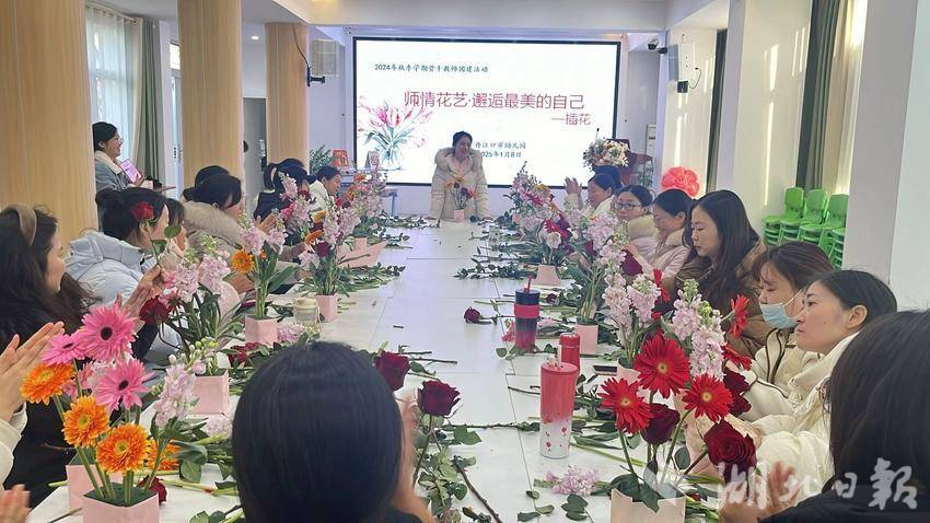 湖北日报客户端讯(通讯员 刘靖 王晓莉)以花艺传递心意,以自然疗愈心灵。1月8日,丹江口市幼儿园组织骨干教师开展“师情花艺,邂逅最美的自己”为主题的插花活动。
