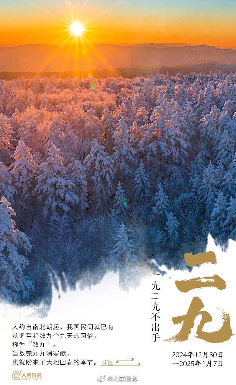 昨天已进入“三九”。“三九四九冰上走”,根据近30年的平均气温统计,我国有近八成的地区气温最低时段出现在“三九”“四九”。其中,北方地区大部在“三九”进入一年中最冷的时候。如何健康过冬?收好数九寒天健康日历,分享给你关心的TA!