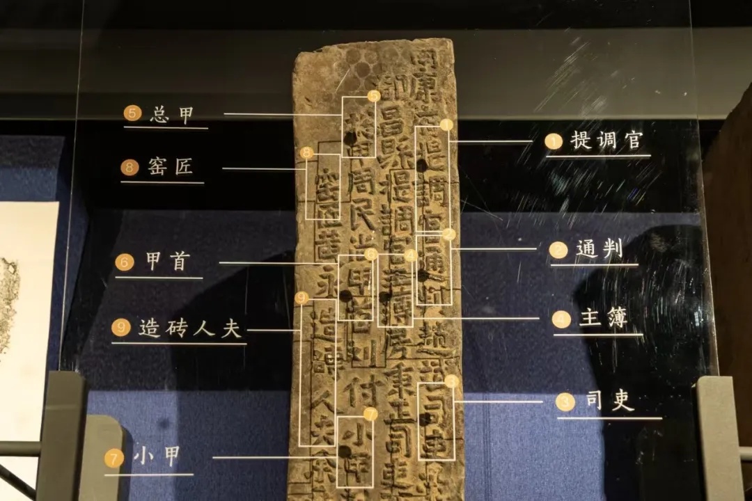 江苏南京城墙博物馆内展出的九级责任制铭文城砖。南京城墙保护管理中心供图