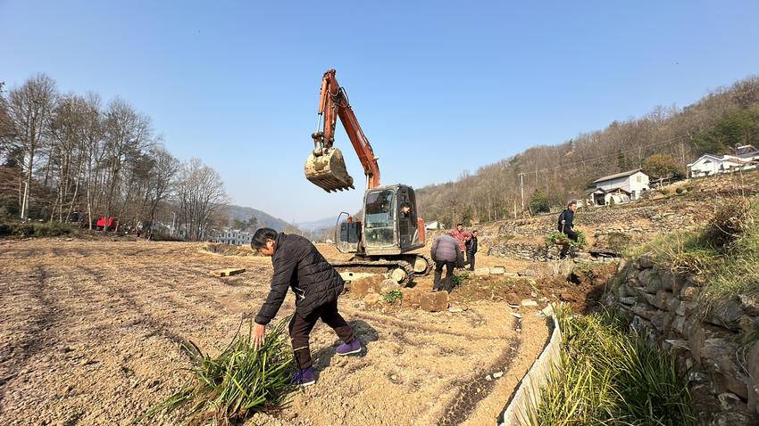 在耕地整治现场,机械的轰鸣声此起彼伏,挖机和旋耕机穿梭于田间,翻耕土地。村干部与村民们并肩作战,开路、搬运、清理,共同配合机械作业,多年的荒地迅速变得干净平整。一位村民表示:“现在翻耕过来,冰冻天气让泥土更松软,开春了种玉米、种蔬菜那相当好。我打算在我屋后整改好的那块土地上种甜玉米,到6月份又能增加一笔收入。”