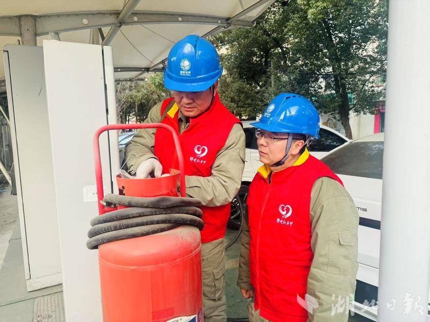湖北日报客户端讯 (通讯员 方园)“充电桩指示灯正常,充电枪接触性能良好,灭火器均在有效期内……”为保障辖区内充电桩安全稳定运行,消除新能源汽车安全充电储能过程中可能发生的各项隐患,1月14日,国网丹江口市供电公司六里坪供电所“南水北调”共产党员服务队对辖区内充电桩开展隐患巡视排查,及时排除影响充电桩供电安全的隐患缺陷,确保充电设施安全稳定运行,为广大车主绿色出行提供充足动力。