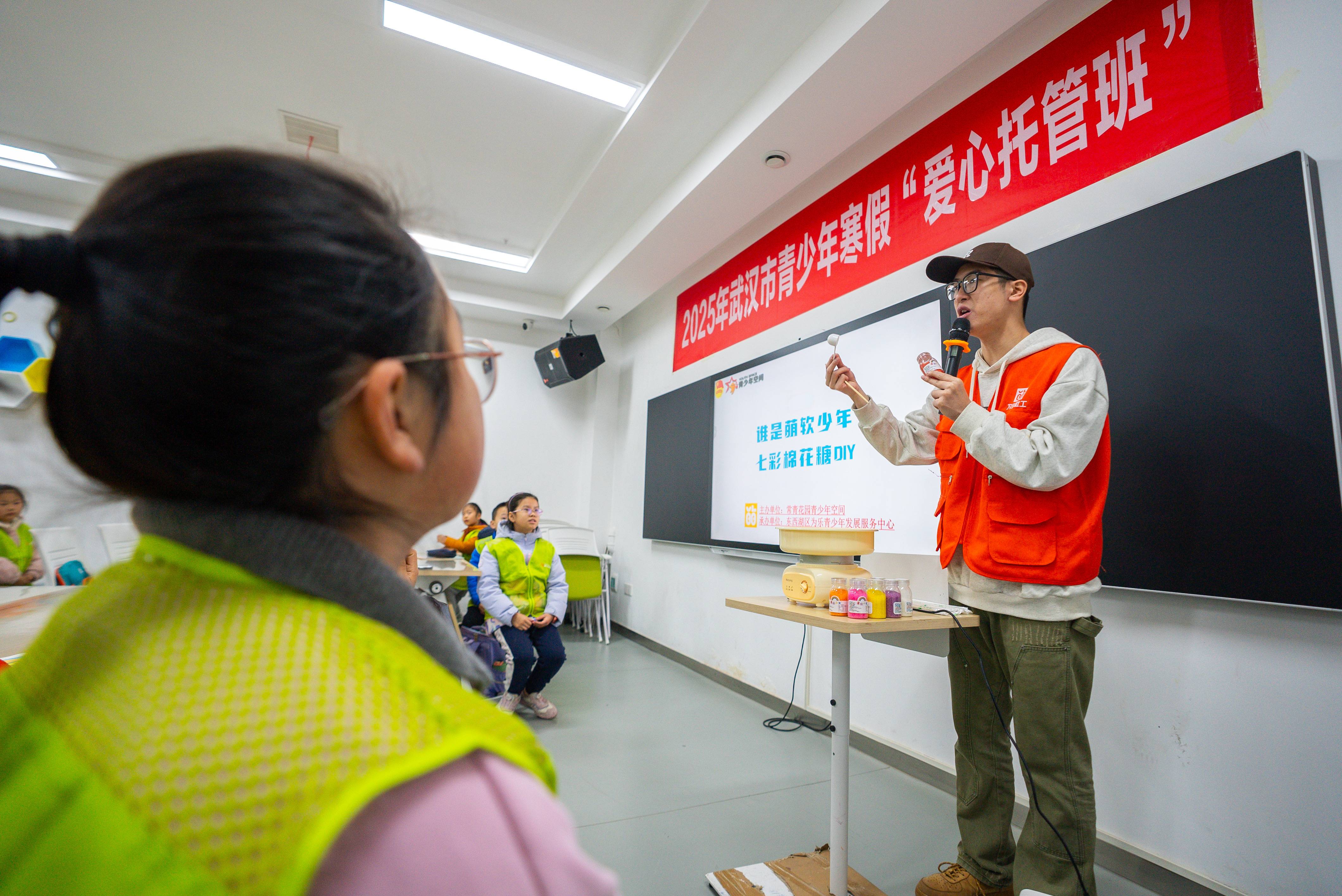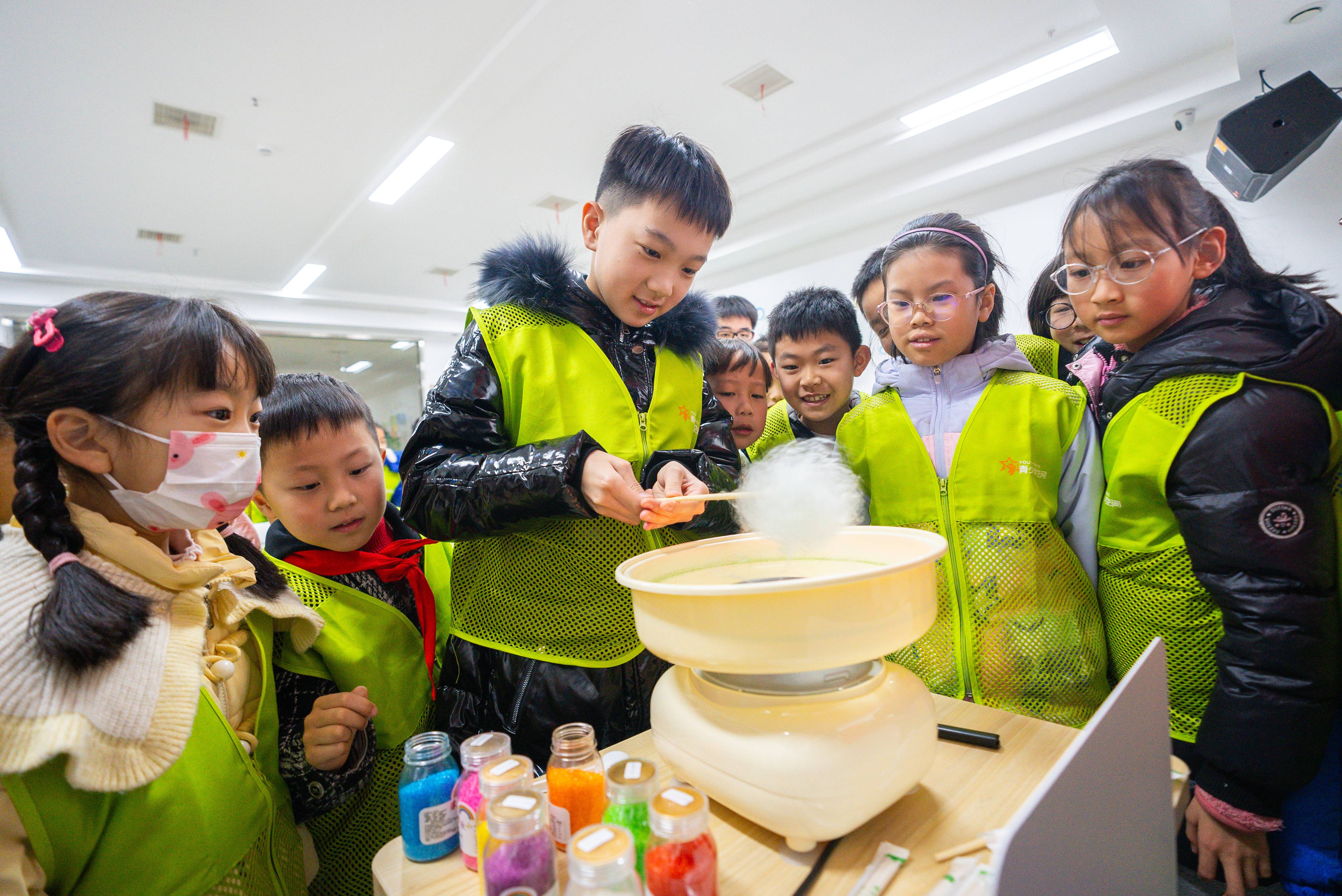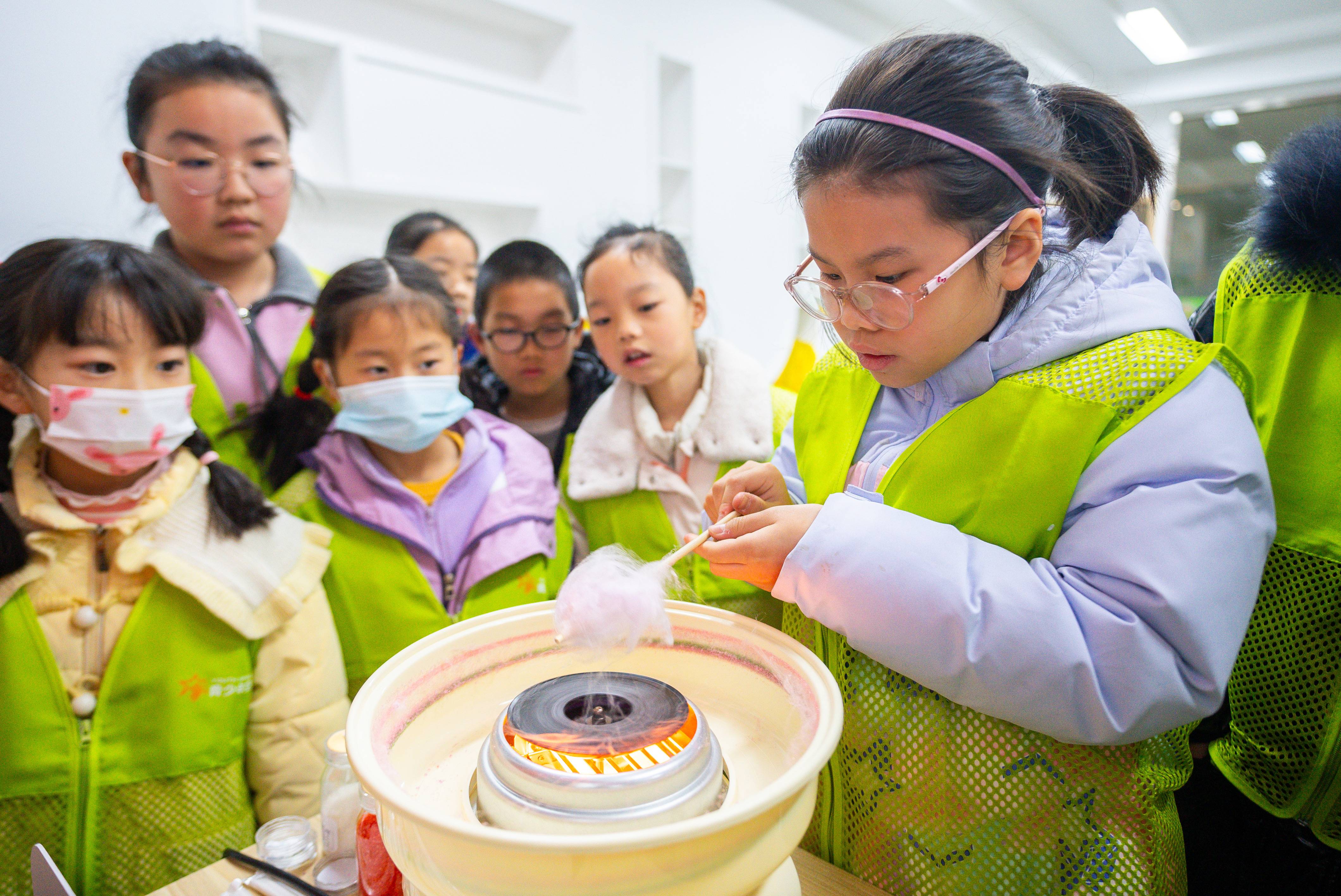 2025年1月14日,在武汉市东西湖区常青花园青少年空间,小朋友一起学习棉花糖的制作,开启甜蜜的寒假托管之旅。当日,武汉190个青少年寒假“爱心托管班”开班,为学生提供公益性寒假看护服务,各类课程丰富多彩,包含了品德修养、科学素养、体育锻炼、美育熏陶、劳动教育、安全自护、课业辅导等方面,为给广大青少年营造一个健康、安全、愉快、有益的寒假环境。(湖北日报全媒记者 倪娜 通讯员 晏君 韦芳 摄)