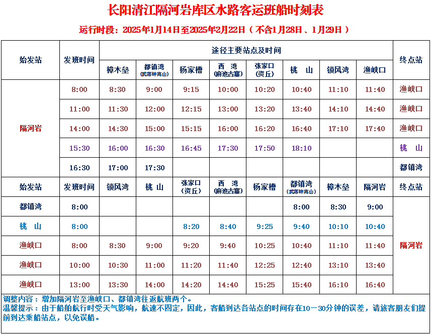 1月14日2025年春运正式开启至2月22日结束为期40天据了解,本次春运长阳共投入客运车辆140台总客位3000个客运船舶9艘总客位1200个充分满足旅客公共出行需求@春运期间需要出行的朋友长阳交通发布最新客运班次表客船班次时刻表水上公交班次时刻表客车班次时刻表小编提醒:有出行计划的朋友请提前到达乘坐站点以免误班来源丨长阳发布