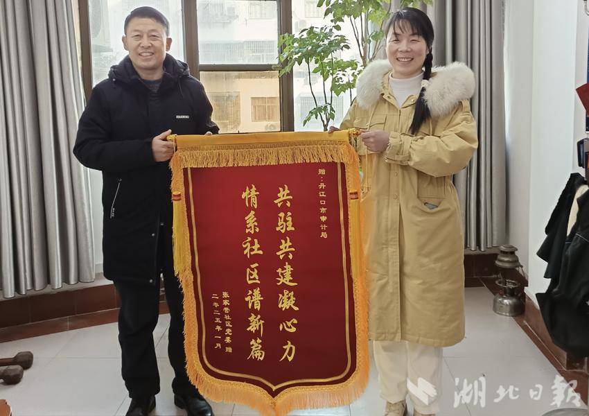 湖北日报客户端讯(通讯员 雒艳霞 蒋河清)1月15日,均州路街办张家营社区党委在春节来临之际,为丹江口市审计局、均州码头文旅有限公司分别送上了印着“共驻共建凝心力 情系社区谱新篇”“倾心支持社区事,共筑社区暖人心”锦旗,感谢为社区共同缔造和群众文化活动所做出的贡献。