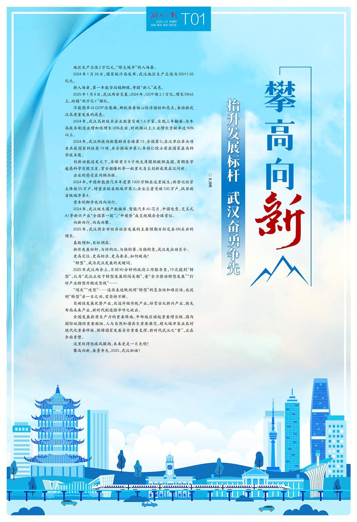 湖北日报推出特刊《攀高向新丨抬升发展标杆 武汉奋勇争先》T01-T12版,敬请关注>>