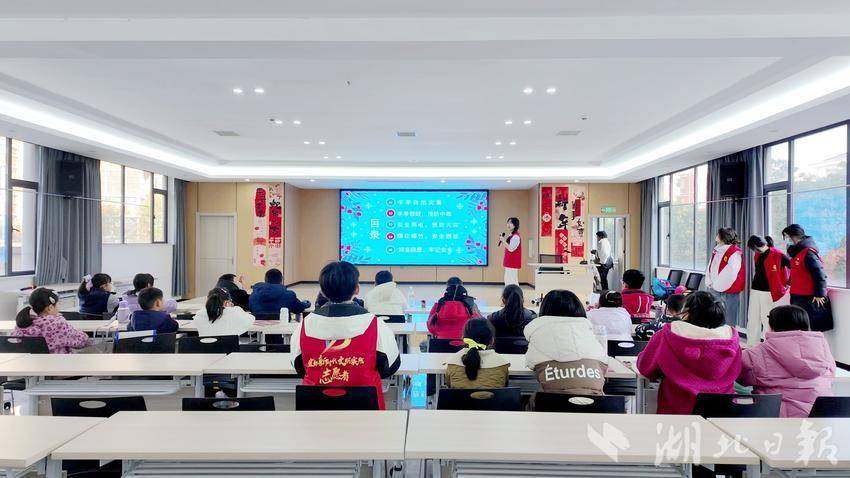 宜都市陆城街道锦江社区寒假班的小朋友们收到了社区精心准备的文具和手工黏土等大礼包;在宜都市姚家店镇红湖社区寒假班里,志愿者老师们通过自我介绍迅速拉近了与小朋友们的距离,他们一起做课间操,用充满活力的运动开启孩子们的健康假期模式。